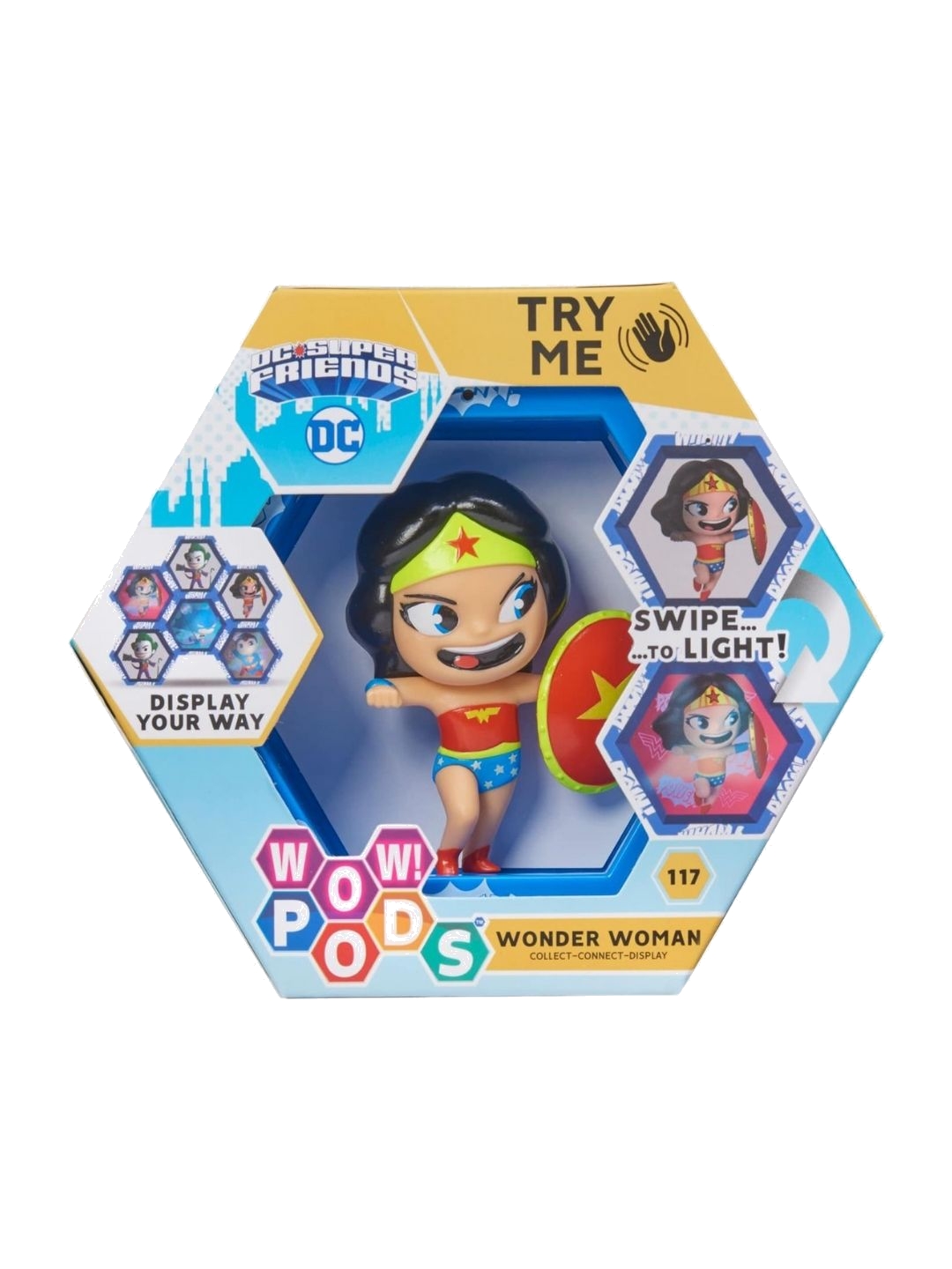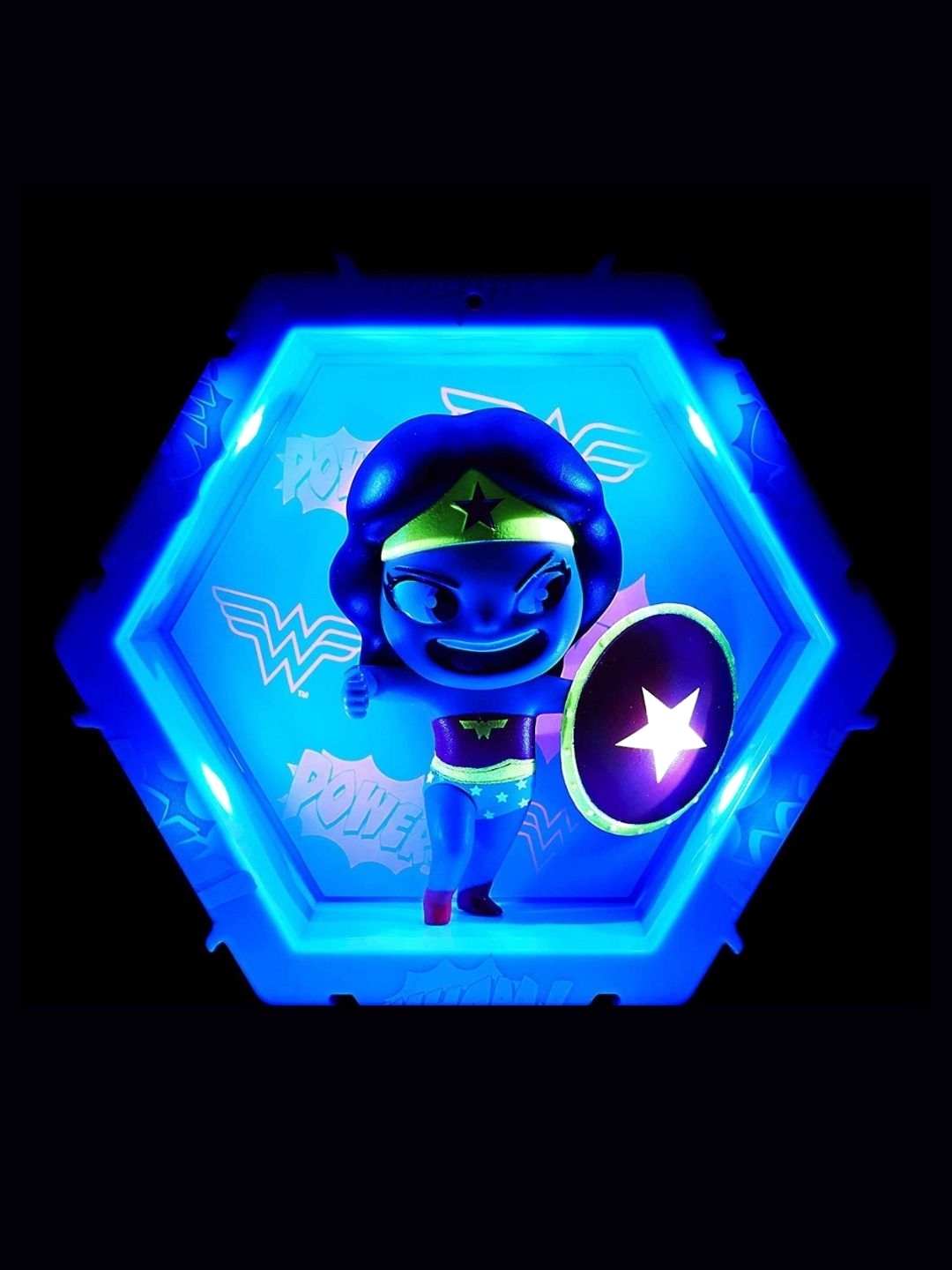 This unique DC Comics Pod light figure features Wonder Woman! The Pods connect in different combinations, creating a fantastic lighting display, perfect for creating an awesome shelf! Wave your hand in front of the Pod and a mysterious hidden surprise will appear! Act fast because the light will disappear automatically after 30 seconds!