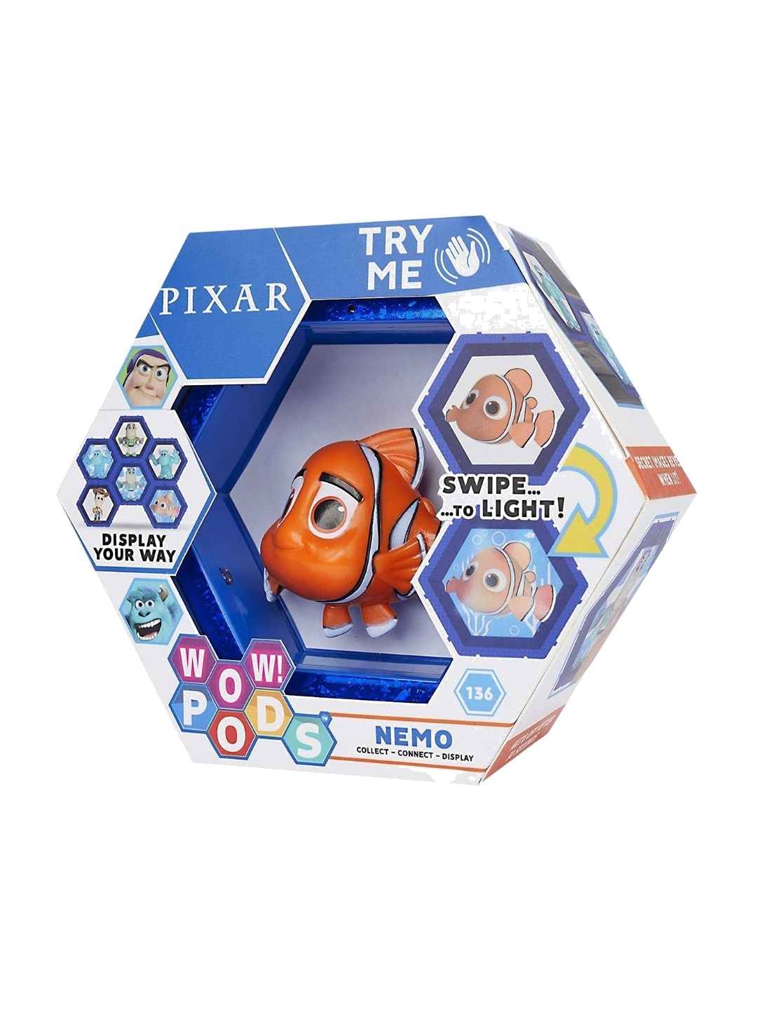 This amazing Disney pod light figure features Nemo. Connect in a number of ways so that you can make your own unique awesome light! Move your hand in front of the POD and a mystery surprise hidden feature is revealed when the POD lights-up. The light automatically goes out after 30 seconds. - Officially licensed -‎ 3 AAA batteries required. (included) - ‎10.41 x 11.43 x 5.59 cm - Imported