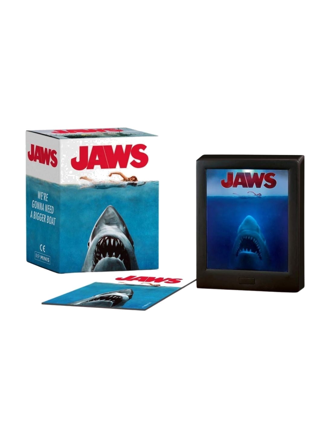 We're going to need a bigger boat and desk because Jaws is here! This deluxe mini kit includes: a 7.6 cm Jaws collectible shadow box inspired by the iconic 1975 movie poster with a spotlight and button that plays the chilling, iconic theme music and a illustrated magnet! - Officially licensed - Imported