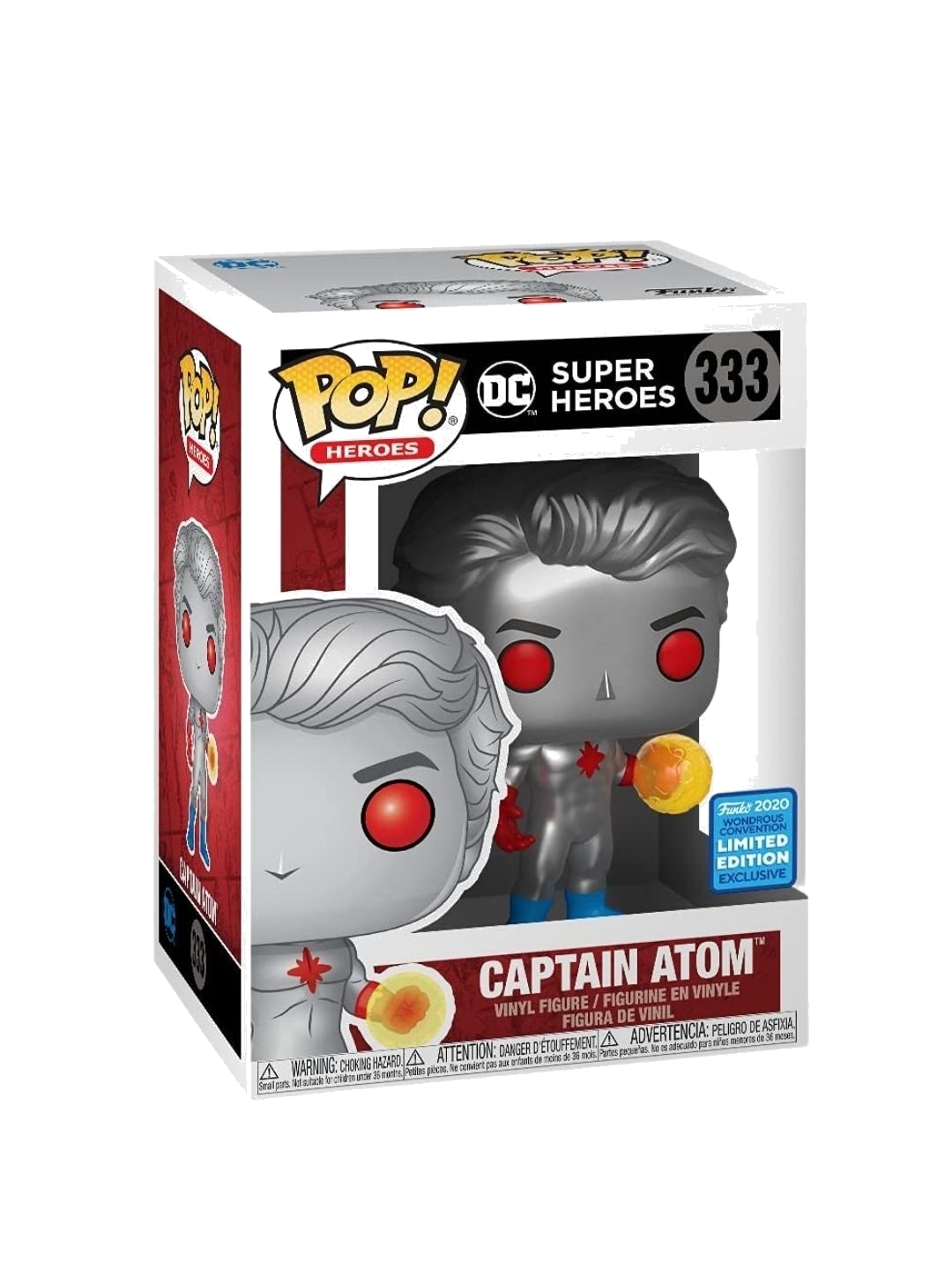 Time to supercharge your collection with Captain Atom, one of the most powerful yet underrated heroes in the DC Universe! This Wondercon 2020 exclusive Pop! showcases him in his iconic silver suit, glowing red eyes, and flames bursting from his hand, highlighting his mastery over energy manipulation, flight, super strength, and more. A must-have addition for any DC fan or Pop! collector looking for something explosive and rare!