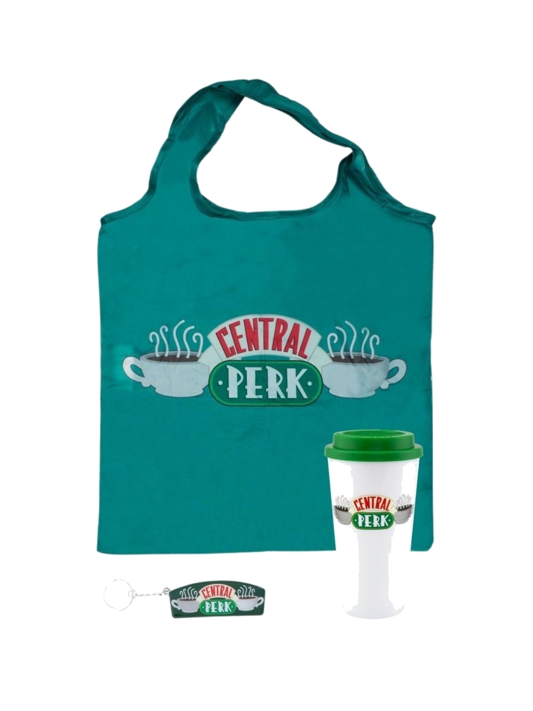 Here's a handy-dandy gift set any Friends fan will appreciate. All branded with the West Village coffee house's logo from the show, it includes a tote bag, a travel mug, and a key chain. - Officially licensed - Hand wash only. Not dishwasher safe. Do not microwave - Imported