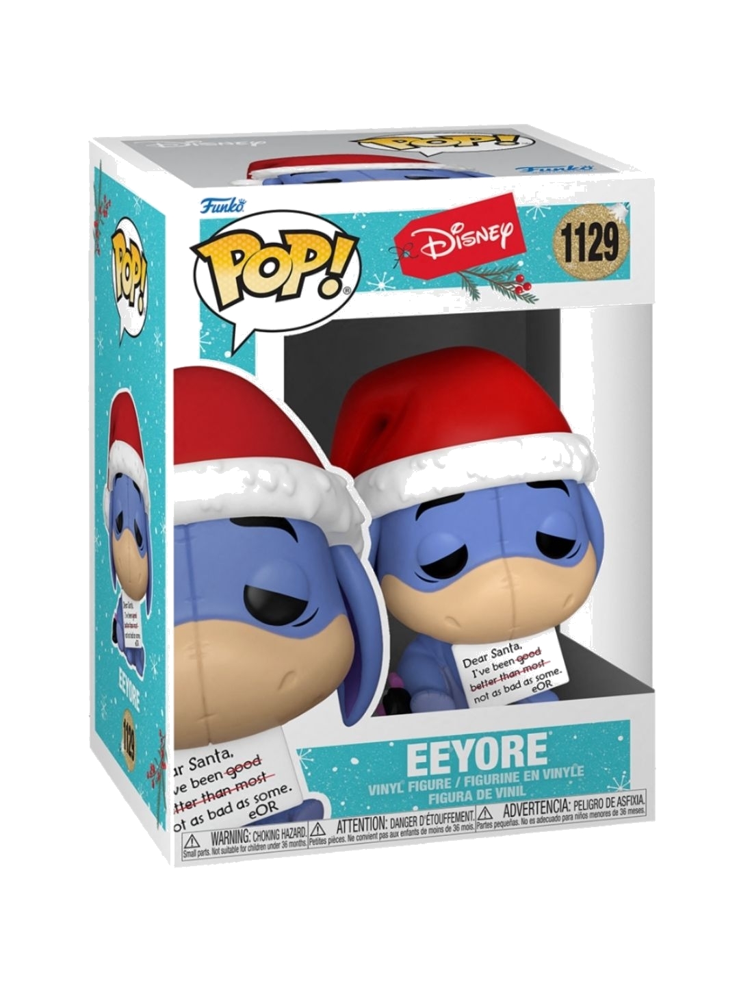 The Funko Pop! Disney: Winnie the Pooh - Eeyore Holiday #1129 figure brings the magic of Christmas to collectors with a unique and adorable character. The beloved Eeyore from Winnie The Pooh is depicted holding a cheeky sign intended for Santa Claus, adding a touch of humor and festive spirit. This holiday edition from the Walt Disney Holiday Pop! Vinyl series captures the love for classic Disney characters, making it a perfect addition to any Funko fan’s collection who wants to celebrate the Christmas season with style and nostalgia.