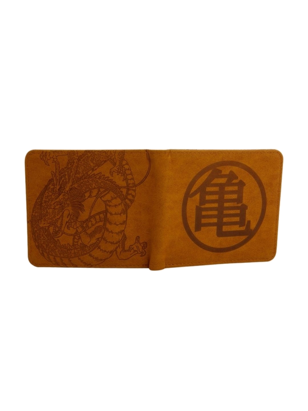 The Dragon Ball Shenron Premium Wallet by ABYstyle is a premium collectible wallet, perfect for keeping your Zeni safe under the protection of the Kame School members and the dragon Shenron. It features multiple storage compartments for cards, tickets, and cash, offering maximum convenience and organization. The wallet boasts an exceptional finish with the Kame emblem embossed on the front, Shenron embossed on the back, Dragon Ball logo embossed inside, printed inner gussets with license patterns, and a metal piece of the 4th Dragon Ball. It also includes a photograph of Goku and his friends inside. Made from polyurethane, the wallet measures approximately 9.5 × 11 cm closed and 22 cm open, delivering style, functionality, and collector value for any Dragon Ball fan.