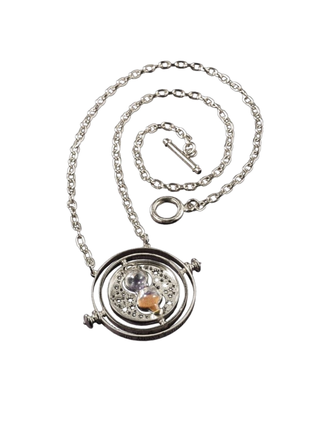 A sterling silver replication of Hermione's Time Turner, used in her third year to travel back in time to take more classes. - Officially licenced - Diameter approx 3.5cm - Material: Sterling silver - Imported