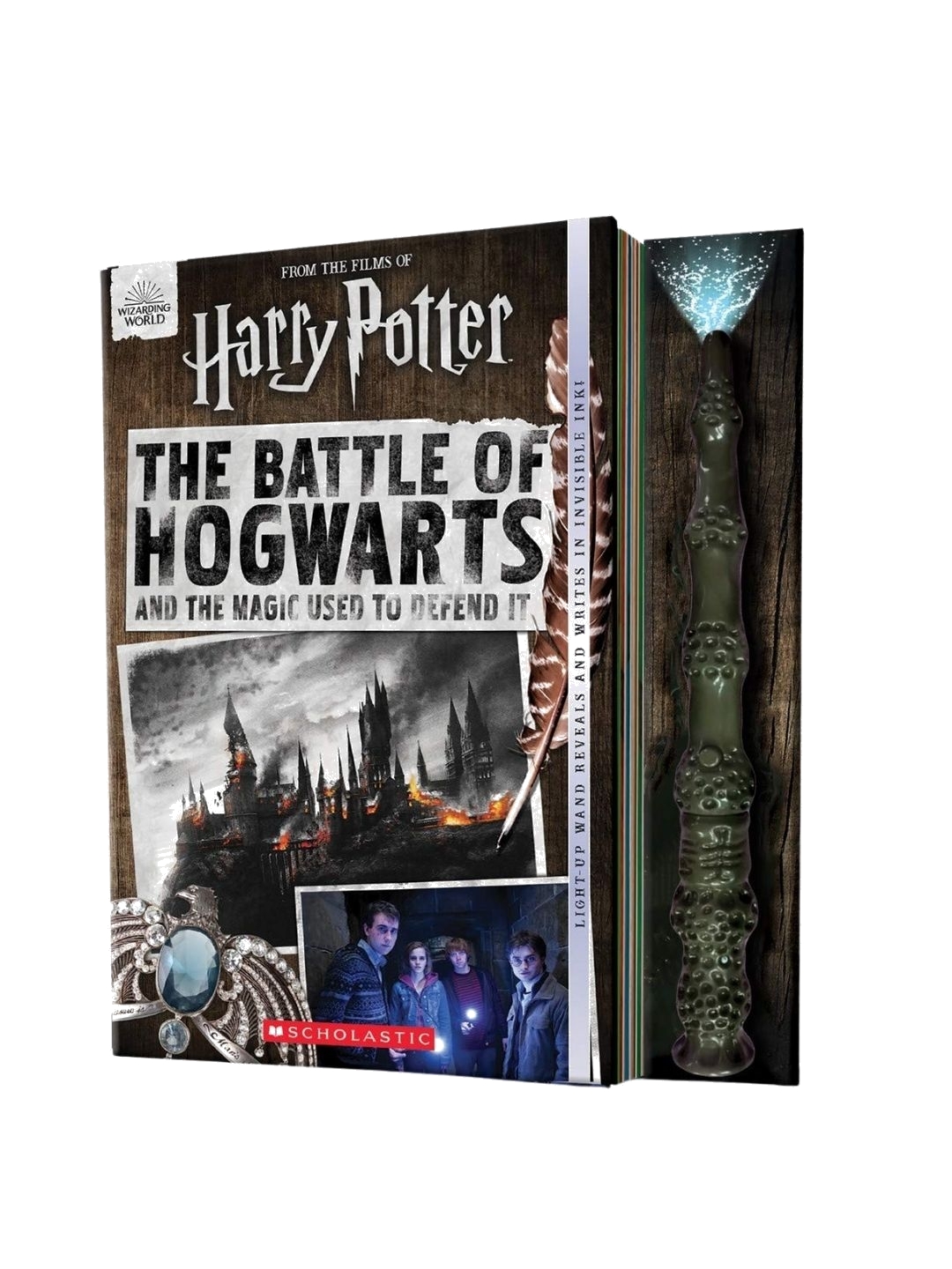 Rediscover the Battle of Hogwarts as seen in the Harry Potter films in this beautiful book, complete with an invisible ink pen with UV light (shaped like the Elder Wand), fold out pages, and fun movie trivia. The Battle of Hogwarts has long been revered as one of the most iconic events in the cinematic history of the Wizarding World. Now fans can rediscover the magic of the Harry Potter films and the wondrous, epic battle that ended the Second Wizarding War-and Voldemort-for good. Discover more about the spells, enchantments, skirmishes, and duels that led up to the Battle of Hogwarts. Which spells were used in the Battle of the Department of Mysteries? What enchantments did the Death Eaters employ during the Skirmish at Malfoy Manor? Whose change of heart-the most powerful magic of all-helped turn the tides? In this book, you'll also learn amazing behind-the-scenes facts about the making of the Harry Potter films. It all comes with a replica of the Elder Wand. Learn how to defend yourself against dark spells, and practise with your wand. - Hardback | 52 pages - Publisher Scholastic US - Author Daphne Pendergrass , By (author) Cala Spinner - 198.12 x 254 x 15.24mm - English - Imported