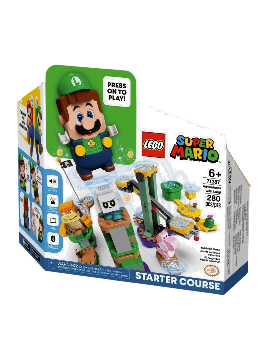 Join the LEGO® Super Mario™ universe (or expand it) with this exciting Starter Course! See how LEGO® Luigi™ reacts to Pink Yoshi, Boom Boom and a Bone Goomba in the levels you create. Spin, seesaw and fly to collect coins. Gain Super Star Power with the ? Block. Play with a friend or family member and connect to their LEGO® Mario™ figure, because teaming up is fun and earns you bonus coins!