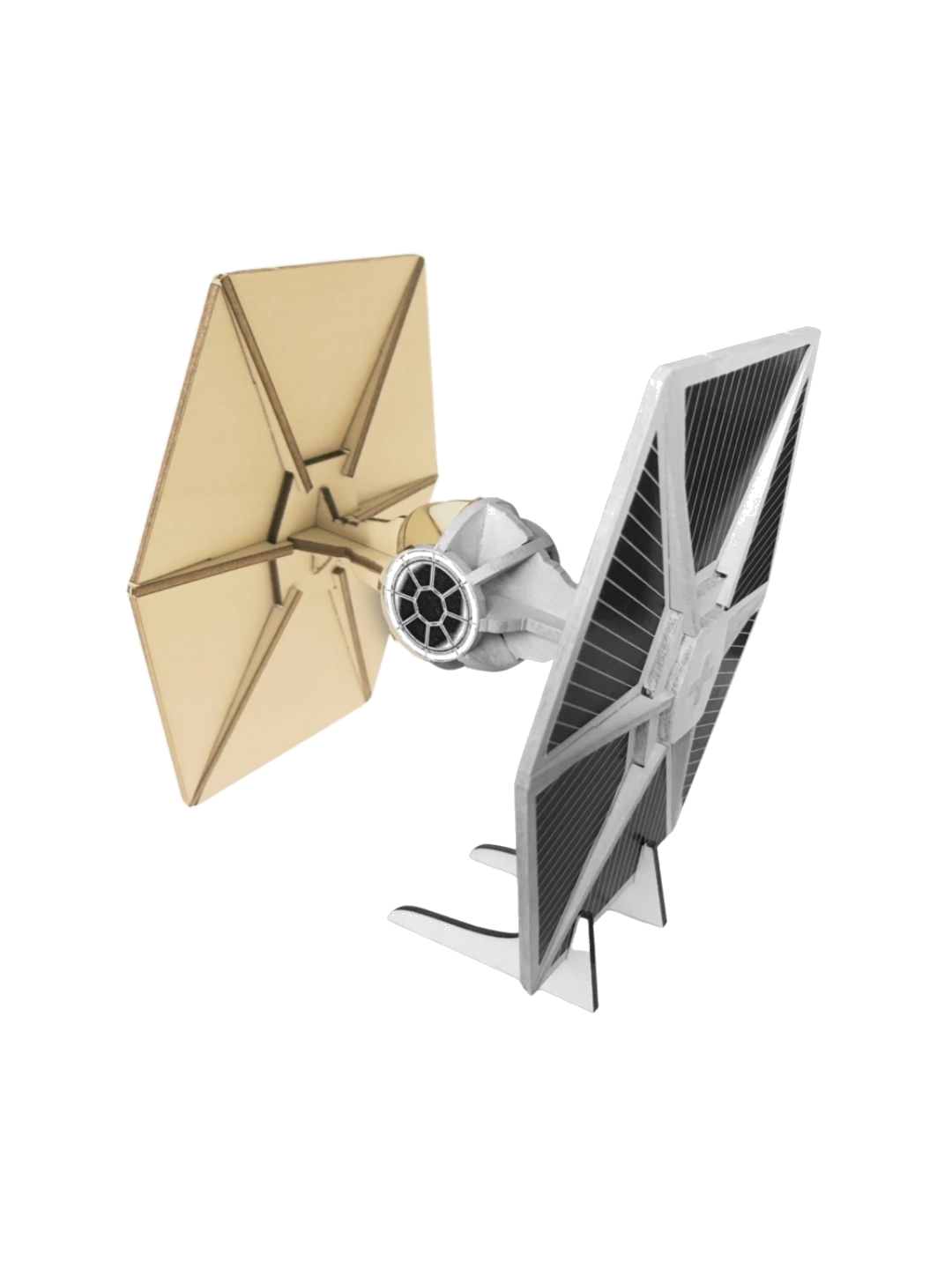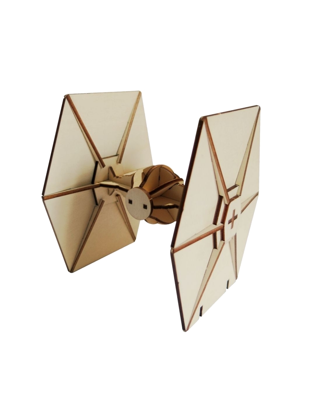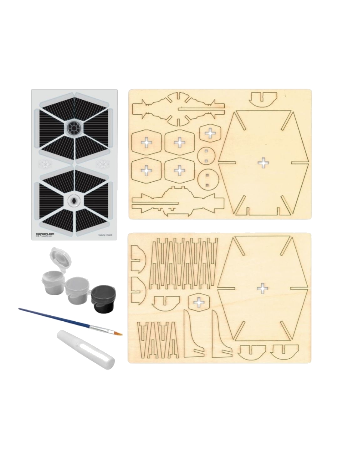 Now you can build your own wooden Tie Fighter! The Star Wars' TIE Fighter 3D wooden model kit, includes 32 laser cut pieces, 3 tubes of coloured paints, 3 paintbrushes, glue, and instructions. - Officially licensed - Pieces: 32 - English - Imported