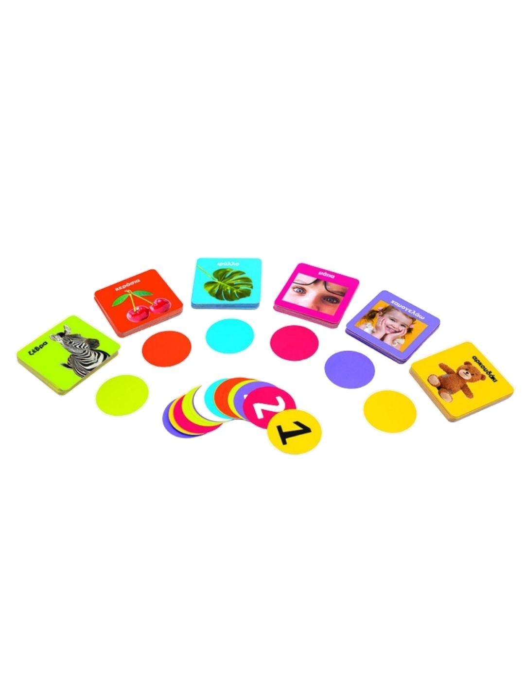 Η πιο διασκεδαστική εκμάθηση των πρώτων του λέξεων! Μέσα από αυτό το παιχνίδι το παιδί θα αρχίσει να αναγνωρίζει απλά αντικείμενα και χρώματα, μαθαίνοντας ταυτόχρονα να μετράει! Οι καρτέλες με τις εικόνες απλώνονται στο δωμάτιο, σε διάφορα ασφαλή σημεία για το παιδί. Τραβήξτε μία κάρτα και δείτε τη προσεκτικά με το παιδί. Βοηθήστε το να βρει και να μαζέψει τόσες καρτέλες, όσες υποδεικνύει ο αριθμός στην καρτα. Προσέξτε όμως... Οι καρτέλες πρέπει να έχουν το ίδιο χρώμα με την κάρτα που τραβήξατε. Διαβάστε δυνατά στο παιδί τις περιγραφές των εικόνων και βοηθήστε το να κατανοήσει τι βλέπει. Εκπαιδευτικές αξίες: Οπτική αντίληψη, Αντιστοίχιση εικόνων με λέξεις, Κινητικές δεξιότητες, Κοινωνικές δεξιότητες. - Ηλικία 2+ - Παίκτες: 1-4 - Τύπος Παιχνιδιού Standalone - Εκδότης AS Company - Ελληνικά - Imported
