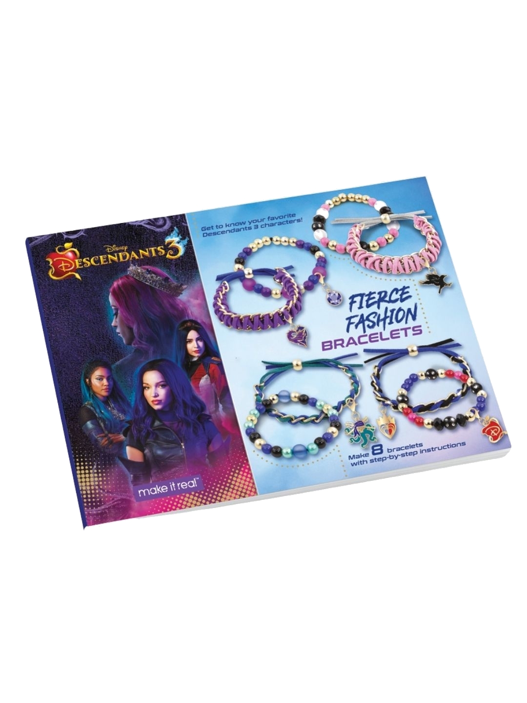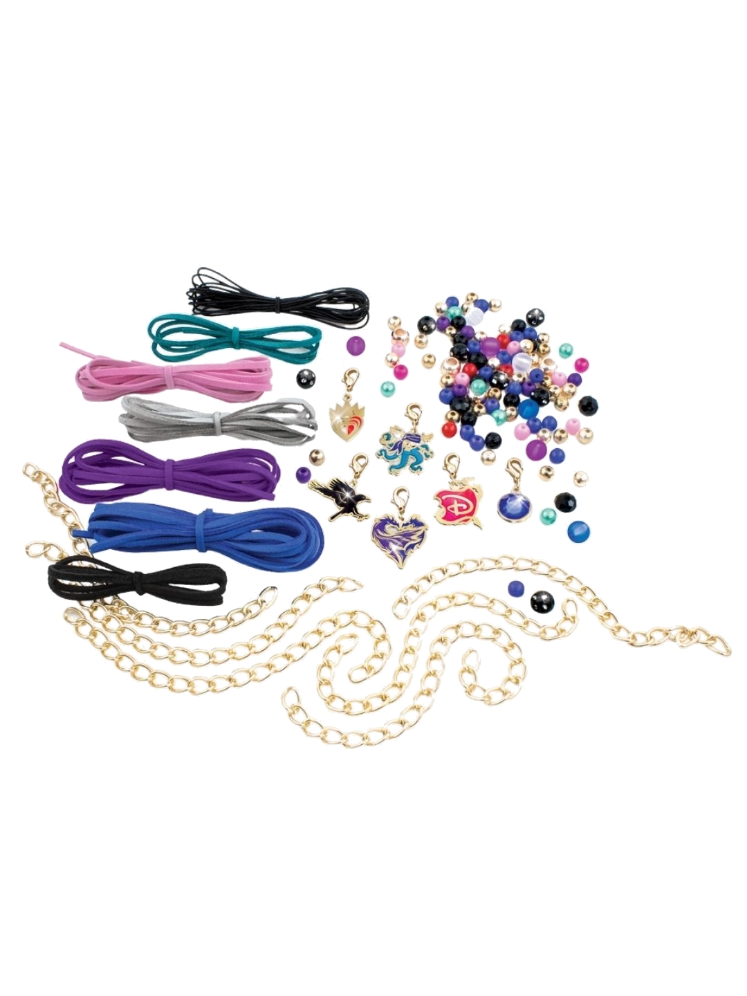 Give artsy Disney fans everything they need to create eight fierce bracelets inspired by Descendants 3. Kit Includes: Descendants 3 charms, 6 colors of suede lace, 6 curb chains, 38 gold beads, 44 colored beads, 6 pearlized beads, 9 frosted beads, 7 beads with rhinestones, 4 faceted beads, 40-page book. - Officially licensed - Imported