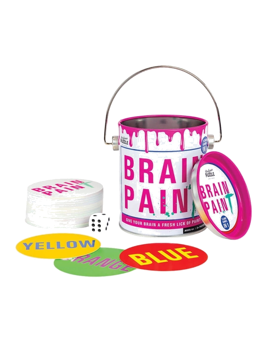 Βάλτε χρώμα στη ζωή σας με αυτή την εκπληκτική συλλογή παιχνιδιών με κάρτες. Το Brain Paint είναι ένα παιχνίδι για 2 έως 6 παίκτες. Μπορείτε να παρατηρήσετε γρήγορα τα χαρακτηριστικά της κάθε κάρτας και να αναγνωρίσετε διάφορους συνδυασμούς μεταξύ των καρτών; Ταιριάζει το χρώμα της μίας κάρτας με το χρώμα που είναι γραμμένη η λέξη στην πρηγούμενή της; Οι δεξιότητες γρήγορης παρατήρησης και αναγνώρισης χρωματικών και λεκτικών συνδυασμών θα δοκιμαστούν στα άκρα και η ευελιξία του μυαλού σας αποτελεί μια βασική προϋπόθεση για να είστε ο νικητής. Περιλαμβάνει τρία διαφορετικά παιχνίδια, αλλά και προτάσεις για άλλες εκδοχές και επεκτάσεις του παιχνιδιού. Το Braint Paint παρέχεται επίσης σε μια πρακτική και άκρως πρωτότυπη συσκευασία, ιδανική για δώρο σε μικρούς και μεγάλους! - Ηλικία 6+ - Παίκτες: 2-6 - Εκδότης Professor Puzzle - Αγγλικά - Imported