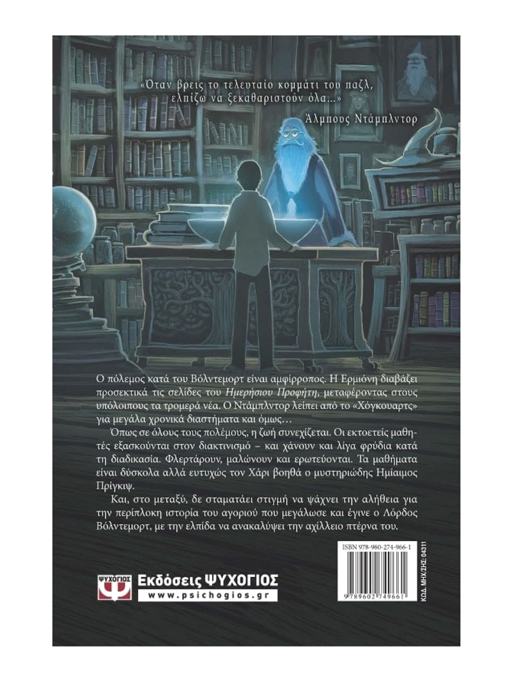 Ακόμη ένα καλοκαίρι στο σπίτι των Ντάρσλι πλησιάζει στο τέλος του. Ο Χάρι Πότερ περιμένει με ανυπομονησία την επίσκεψη του καθηγητή Ντάμπλντορ. Η τελευταία φορά που είχε συναντήσει το διευθυντή της Σχολής "Χόγκουαρτς" ήταν σε μιαν άγρια μονομαχία με τον Βόλντεμορτ. Ο Χάρι δεν μπορεί να κρύψει την αγωνία του. Γιατί ο Ντάμπλντορ βιάζεται να τον δει τώρα; Τι είναι αυτό που δεν μπορεί να περιμένει μέχρι να αρχίσει η νέα σχολική χρονιά; Ο έκτος χρόνος στη Σχολή "Χόγκουαρτς" προμηνύεται εκρηκτικός και θα αλλάξει για πάντα τη ζωή του Χάρι και των φίλων του… - 672 σελίδες - 14 x 21 εκ - Ελληνικά - Μαλακό εξώφυλλο