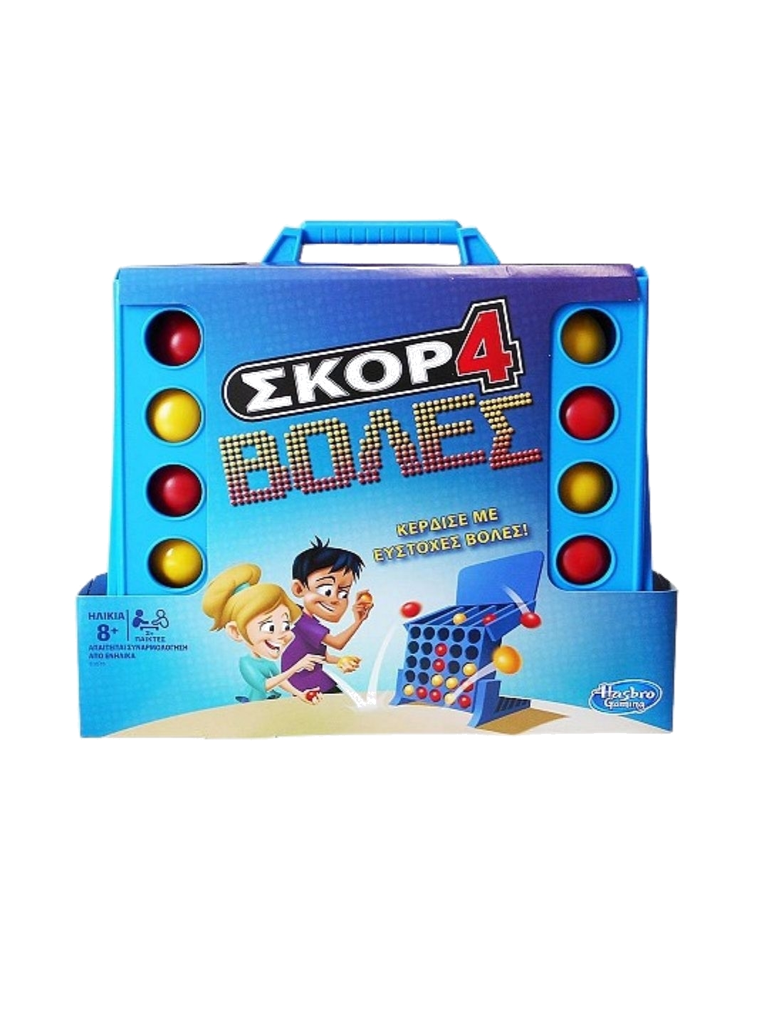 Κέρδισε με εύστοχες βολές! Το παιχνίδι ΣΚΟΡ 4 ΒΟΛΕΣ είναι γρήγορο και διασκεδαστικό σε μια κούρσα για να βάλεις 4 βολές στη σειρά! Μετρήστε και ξεκινήσετε: 1-2-3 ... ΓΚΕΛ! Δύο παίκτες ρίχνουν τις ελαφριές, πολύχρωμες μπάλες στο πλέγμα ταυτόχρονα. Θυμηθείτε, οι μπάλες πρέπει να χτυπήσουν στο τραπέζι πριν μπουν μέσα. Ρίξτε τις μπάλες, προσπαθώντας να γεμίσετε τις τρύπες στο πλέγμα κάθετα, οριζόντια ή διαγώνια. Μόλις ένας παίκτης βάλει 4 μπάλες στη σειρά του χρώματος του κερδίσει το παιχνίδι! Όταν το παιχνίδι τελειώσει, διπλώστε το πλέγμα σε μια εύχρηστη θήκη αποθήκευσης.Το παιχνίδι ΣΚΟΡ 4 ΒΟΛΕΣ συνδυάζει τον τρόπο του κλασικού παιχνιδιού ΣΚΟΡ 4 με τον γρήγορο, ανταγωνιστικό ενθουσιασμό. Δύο παίκτες σε έναν αγώνα ενάντια στο χρόνο προσπαθούν να βάλουν 4 μπάλες του χρώματός τους στη σειρά για να κερδίσουν. Είναι εύκολο να παίξετε και εξαιρετικά συναρπαστικό, καθώς οι παίκτες ρίχνουν τις μπάλες στο πλέγμα με ταχύτητα βολίδας. Εάν οι παίκτες έχουν ρίξει όλες τις μπάλες στο πλέγμα αλλά δεν έχουν βάλει 4 μπάλες στη σειρά, ρίξτε την πορτοκαλί μπάλα μπαλαντέρ για να καθορίσει τον νικητή. Τα παιδιά μπορούν επίσης να εξασκηθούν μόνα τους για να προετοιμαστούν για ένα μελλοντικό ματς ΣΚΟΡ 4 ΒΟΛΩΝ. - Το παιχνίδι είναι κατάλληλο για 2 παίκτες άνω των 8 ετών.