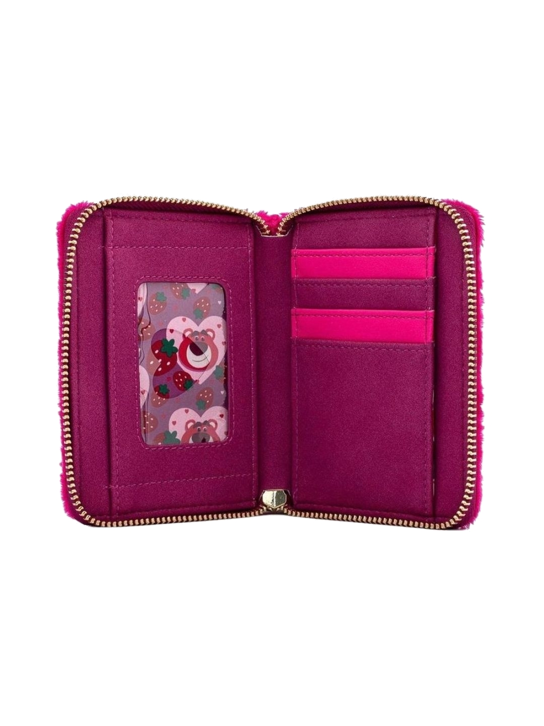 Show your appreciation for the pink strawberry-scented bear who ruled Sunnyside Daycare in Toy Story 3 with this Lotso wallet from Loungefly. - Officially licensed - Plush with a faux leather trim - 9.5cm x H:6cm x D:2cm