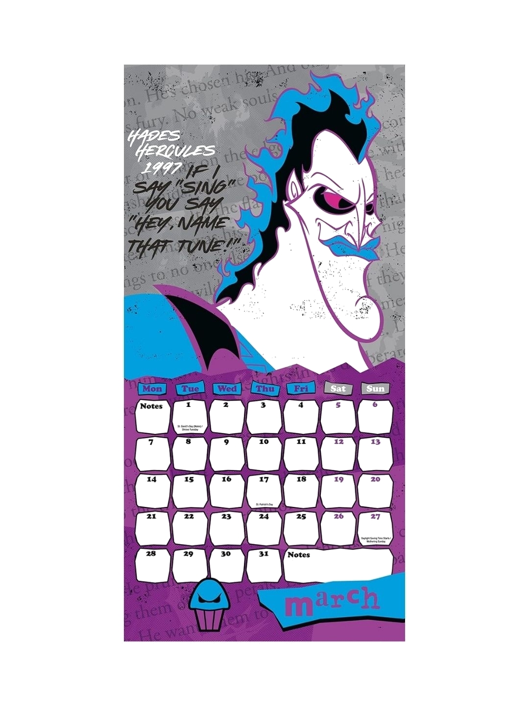 This Disney Villains calendar is all about the Disney baddies, the characters we all love to hate. There are many villains in Disney films who are loved by generations of fans. Who doesn't love a Disney film?