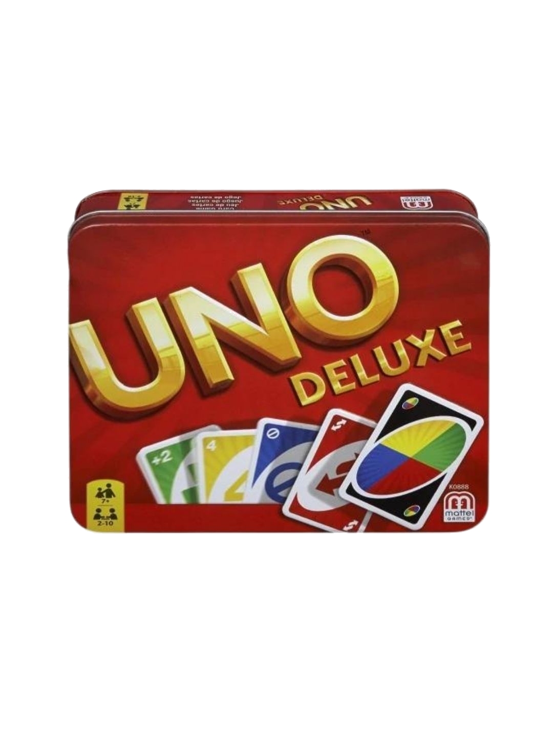 Bring home this fantastic Uno Deluxe card set. The set includes four suits of 25 cards each, plus eight wild cards, totaling 108 cards. Instructions and scoring rules are included to help you easily learn the game. The goal is to be the first to get rid of all your cards and earn points from other players. To win the basic game, you must score 500 points.
