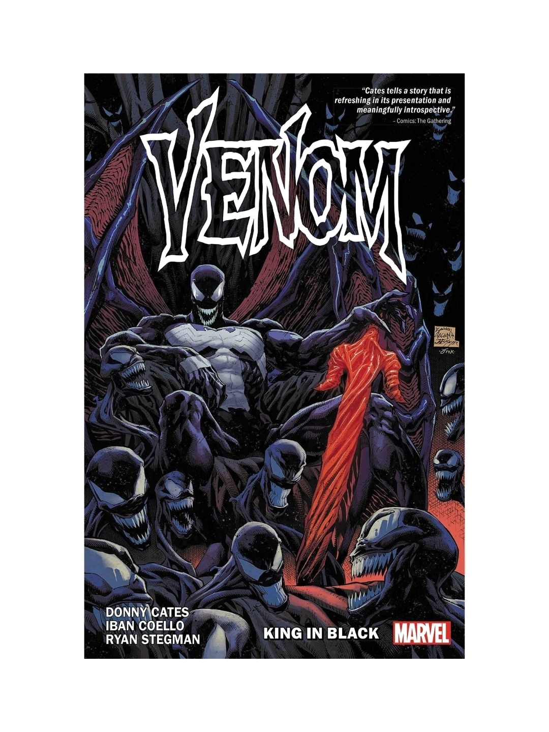 The horrifying threat of the King in Black, all-powerful god of the symbiote race, has loomed large for years. And after millennia of imprisonment, Knull was finally freed thanks to a rash act by Eddie Brock! Now, the King in Black and his symbiotic army have arrived on Earth! But what is Knull's hideous agenda? And what happens to Venom when he finally comes face to face with the lord of the abyss? Eddie Brock is about to face the biggest challenge of his life...but he's not alone. Who will stand by his side in Earth's darkest hour? And do any of them have the slightest chance of success? COLLECTING: Venom (2018) 31-35 - Paperback | 200 pages - Publisher Marvel Comics - Author Donny Cates , Illustrated by Iban Coello - English