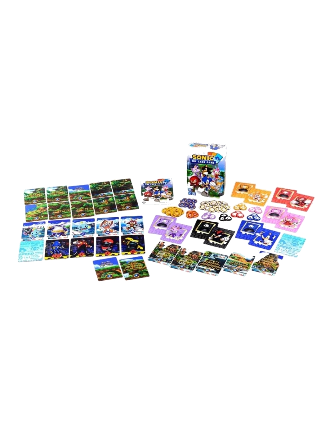 Gotta go fast in this card game! Take your sneakers to the tabletop to race through levels that evolve as you play, collecting power-ups and rings to win. - 2-6 players - 20-30 minutes play time - Ages 6 and up - English Edition