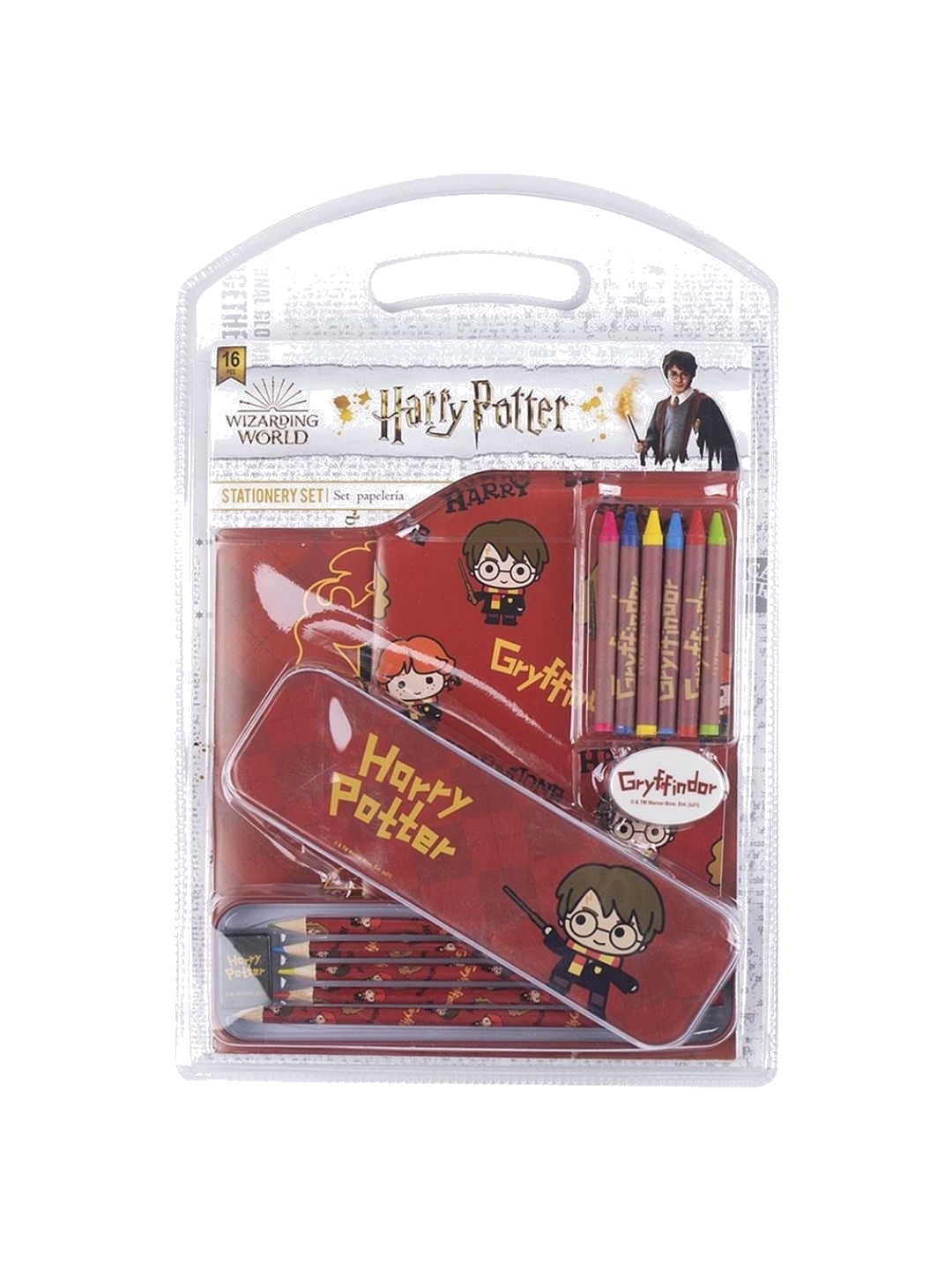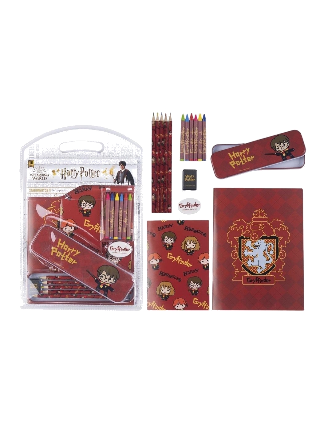 This amazing stationery set is the perfect gift for every Harry Potter fan! - Officially licensed - 1 pencil box metal 23x8.5cm, 2 Notebook A4 / A5, 1 pencil HB, 4 colour pencils, , 1 eraser