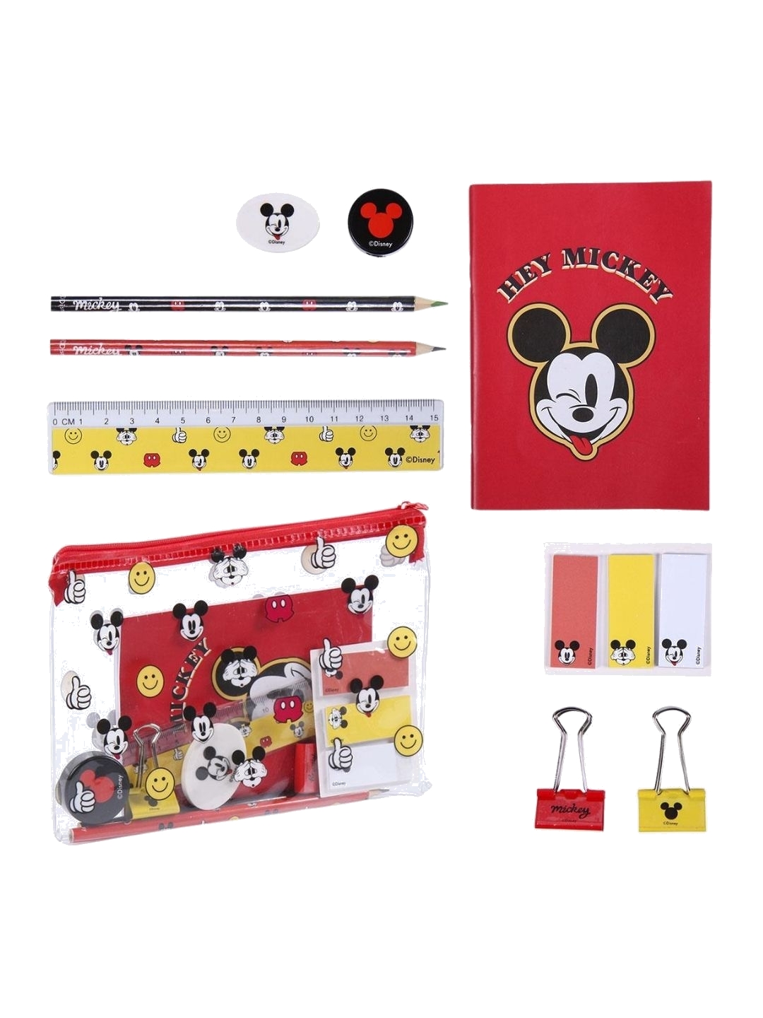 This amazing stationery set is the perfect gift for every Disney and Mickey Mouse fan! - Officially licensed - A5 notebook, 2 pencils, 1 eraser, 1 sharpener, 1 ruler, 2 clips, bookmarks