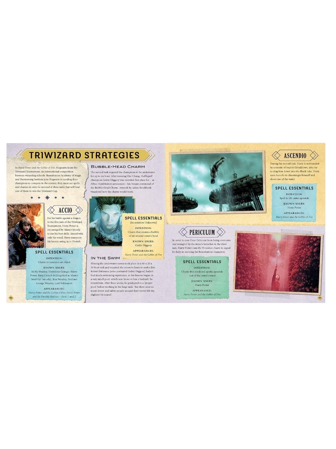 This thrilling interactive scrapbook takes readers on a tour of iconic spells and charms, from Expelliarmus to the Patronus Charm, and even the three Unforgivable Curses. Covering everything from protective enchantments and useful jinxes to dangerous spells, it transports us into the magical world of Harry and his friends. With detailed profiles of each spell, hex, charm or curse, and information about key enchantments seen in the films, this is the ultimate guide to the magic practised at Hogwarts School of Witchcraft and Wizardry and far beyond. - Hardback | 48 pages - Publisher Bloomsbury Publishing Plc - Author Warner Bros. - English