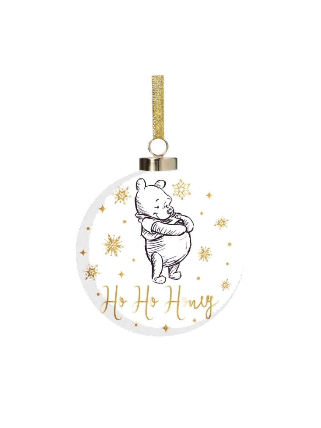 Bring the sweet magic of Christmas to your home with the wonderful Disney Winnie The Pooh Christmas bauble, available at Nerdom! This stylish 9cm ceramic bauble features a crisp gloss white finish and a luxury gold foiled snowflakes pattern along with the festive "HO HO HONEY" sentiment. It is adorned with a charming black pencil style illustration of Winnie the Pooh. It has a gold glitter hanging ribbon for easy hanging on your Christmas tree. It comes in a luxury branded gift box, making it the perfect gift for any Winnie the Pooh and Christmas enthusiast!