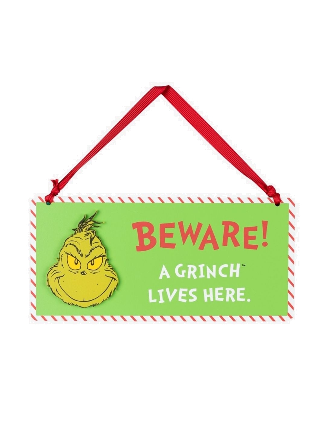 This The Grinch Beware A Grinch Lives Here Hanging Plaque is the perfect choice for every Grinch fan.