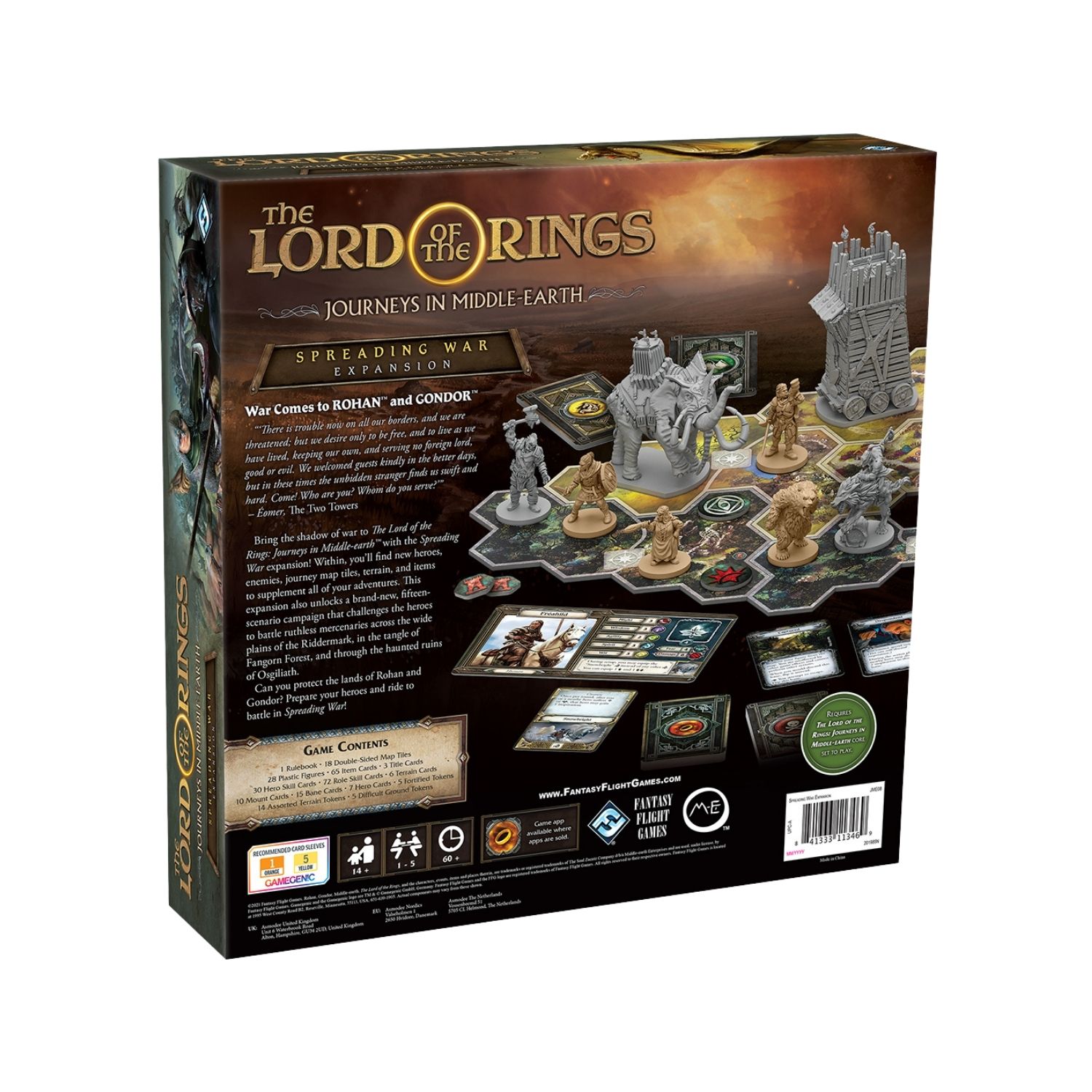 War has come to the realm of Men. Shadows spread throughout Rohan and Gondor, from the tangled depths of Fangorn Forest to the haunted ruins of Osgiliath. You have encountered ruthless mercenaries that have invaded the kingdoms of Men under orders from a mysterious figure, and now you must strike out to hopefully quell the tide of violence before it becomes too great. Taking place in the proud kingdoms of Gondor and Rohan, this expansion unlocks an all-new campaign with fifteen scenarios that see you traveling between the kingdoms and defending them from enemy forces. Spreading War also comes with 6 new heroes, 21 enemy miniatures, 18 double-sided journey map tiles, new roles, new terrain types, and much, much more!