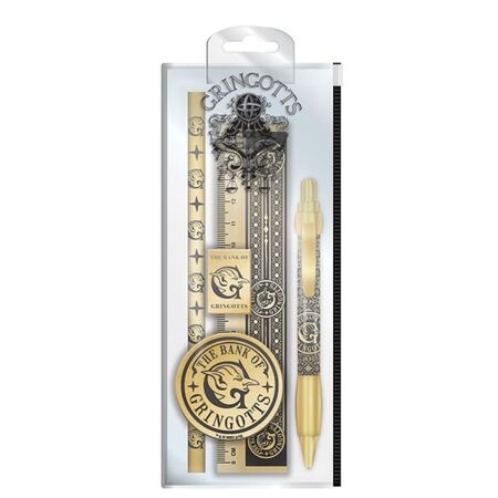 This officially licensed Harry Potter Gringotts stationery set contains everything you need to write and draw in style! The set includes a pencil, a ballpoint pen, and a ruler, all designed with intricate details inspired by the magical world of Harry Potter and the legendary Gringotts Bank. Perfect for students, collectors, or anyone who loves magic and fantasy.