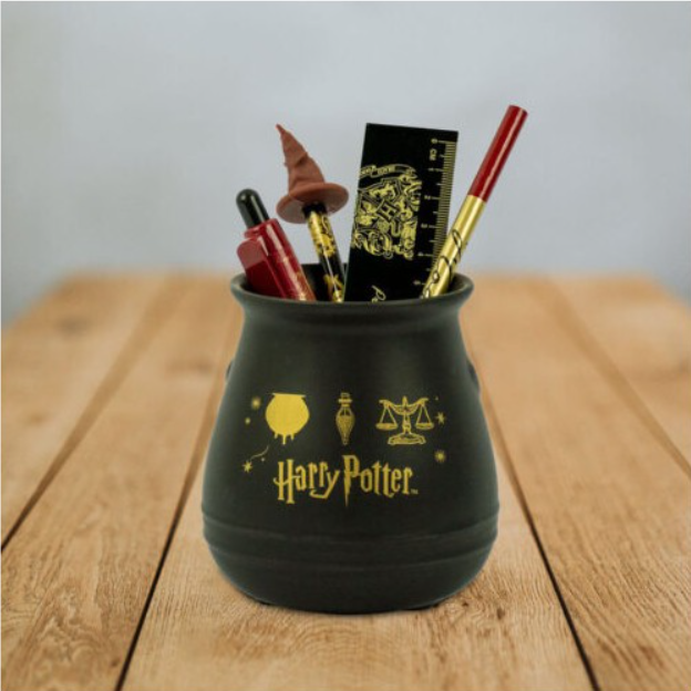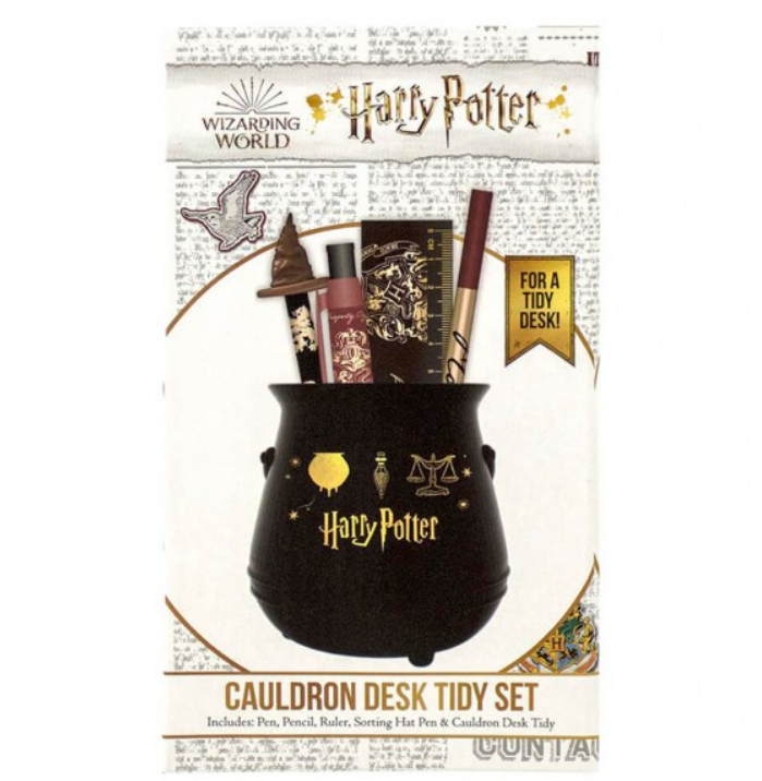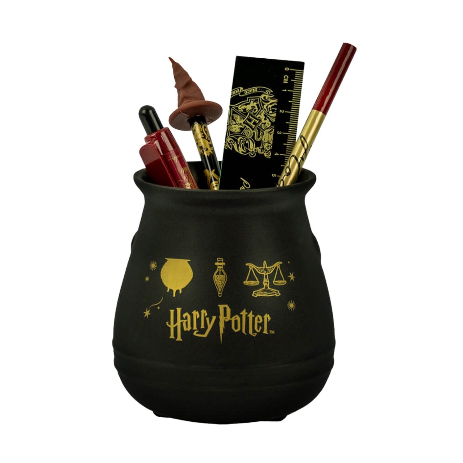 Discover the Harry Potter Desk Organizing Set, a must-have accessory for any fan of the Harry Potter universe! This set helps keep your desk neat and organized with a magical touch. The cauldron-style desk tidy is perfect for holding your pens, pencils, and other stationery. The set includes a ceramic cauldron-style desk tidy, a Sorting Hat pen, a Hogwarts click pen, a Hogwarts gold print pencil, a personalized ruler, and has a total weight of 414g. The desk tidy measures approximately 10cm x 9cm x 9cm and comes in a gift box.