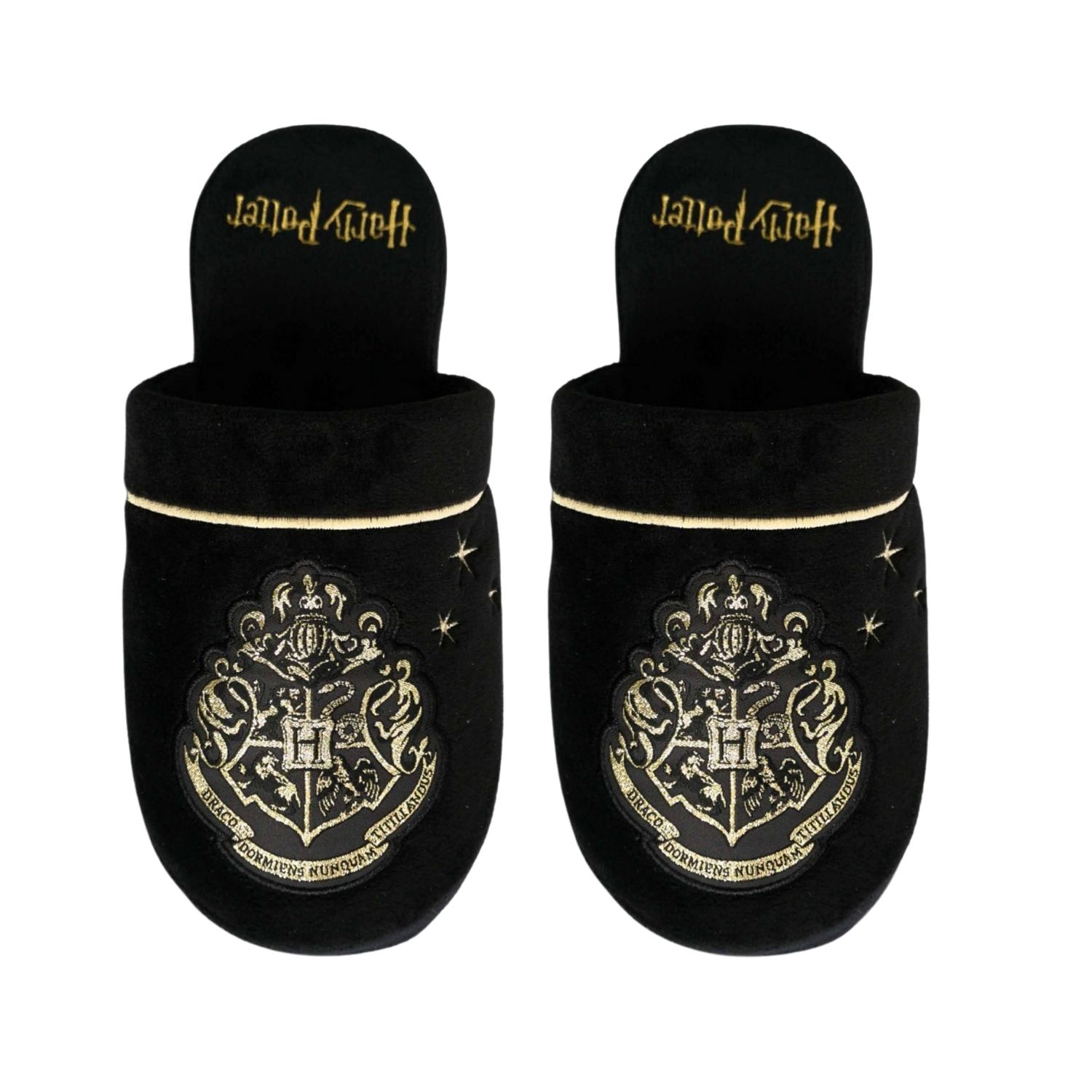 Hogwarts Crest Harry Potter Black and Gold Ladies Slippers