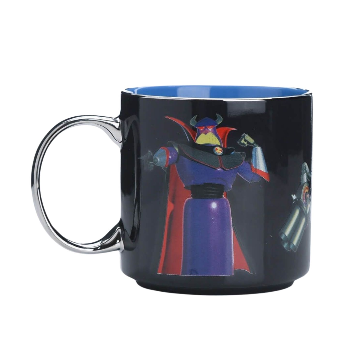 Discover the Disney Icon Emperor Zurg Mug, inspired by the dark Disney villain and the eternal nemesis of Buzz Lightyear, Emperor Zurg from Toy Story! This stunning mug features three wicked poses of Zurg, along with a silver electroplated handle and a unique stackable shaped rim. The quote “Surrender Buzz Lightyear…..I have won” is featured on the inside base, adding an extra touch of drama to your collection.
