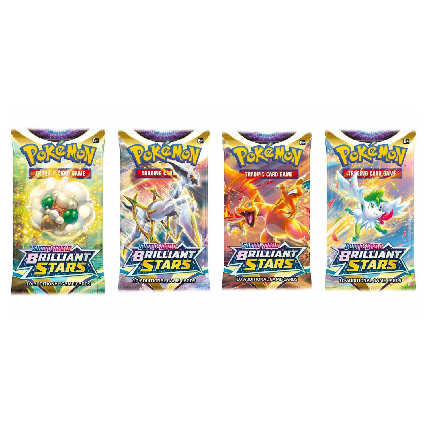 This Pokemon TCG Sword & Shield 9 Brilliant Stars Booster Over 170 cards contains 10 additional cards. Random Booster pack design. 4 brand-new Pokémon VSTAR 20 powerful Pokémon V and 3 enormous Pokémon VMAX 30 cards with special art in the Trainer Gallery subset More than 20 Trainer cards and a new Special Energy card