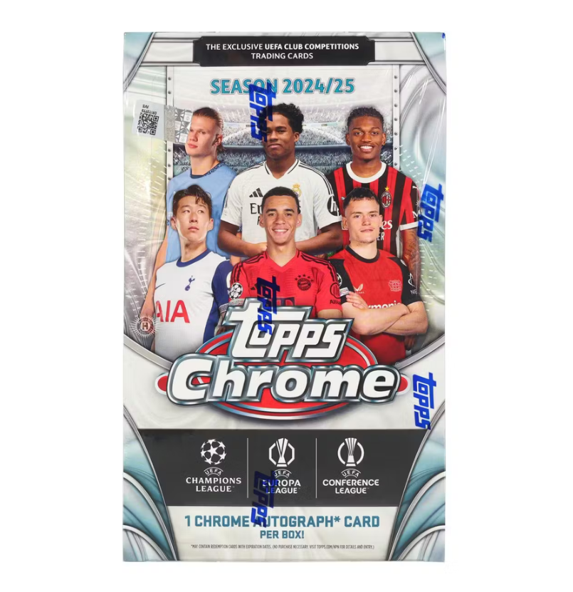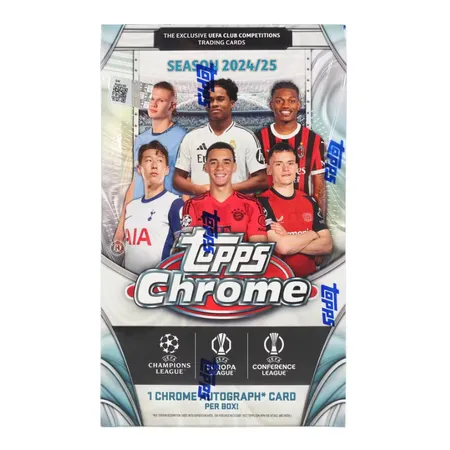 Topps Chrome UEFA Club Competitions 2024/25 returns with next-level chrome tech and a fresh lineup of cards spotlighting the action from the UEFA Champions League, Europa League, and Conference League. This premium set offers a deep and colorful collector experience.