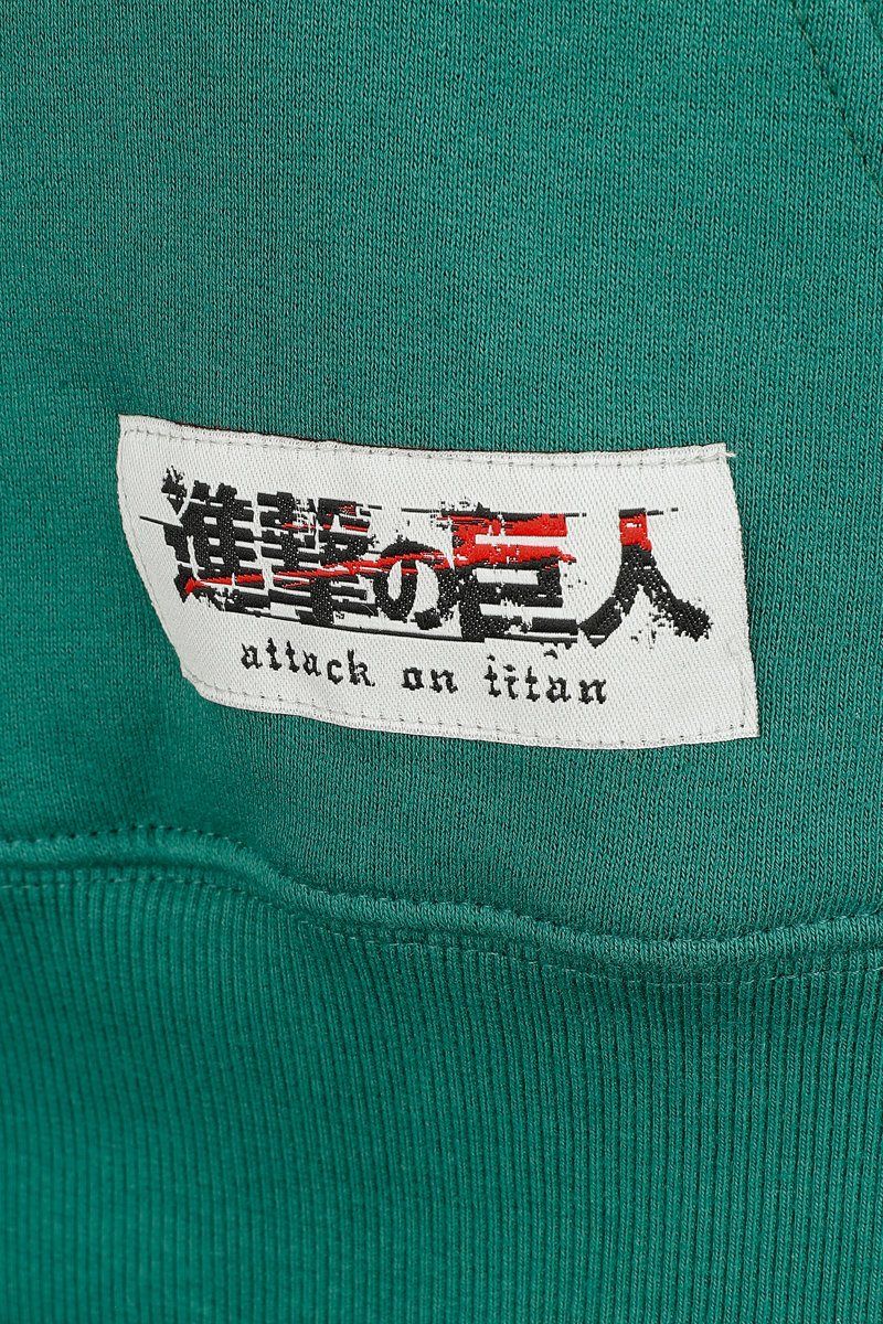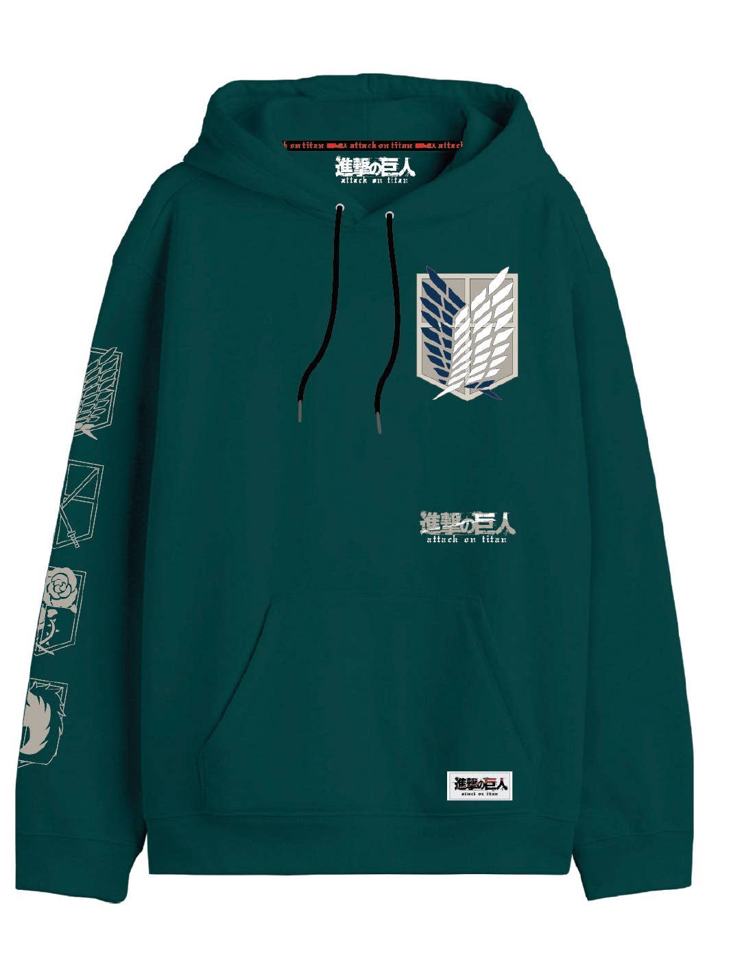 The Attack On Titan Green Hoodie is a green hooded sweatshirt, perfect for everyday wear and fans of the popular series. It features a hooded collar, long sleeves, and silkscreen designs on the front and sleeves, providing a unique style that reflects the spirit of Attack On Titan.