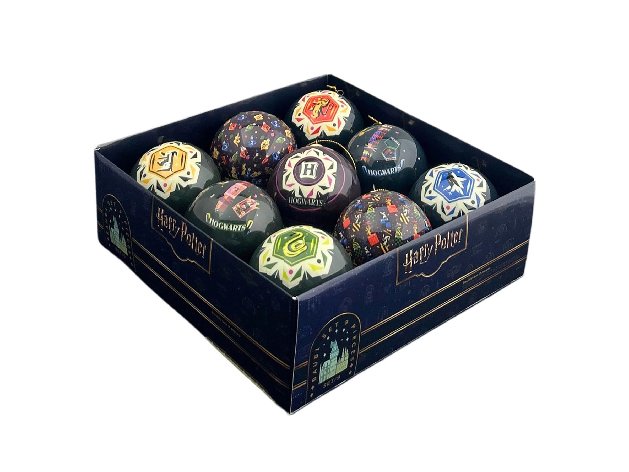 Add a magical touch to your Christmas tree with the Harry Potter 9-piece bauble set. Each bauble measures 8.3 cm in diameter and is made of high-quality polystyrene, featuring detailed emblems of the Hogwarts Houses, adding magic and style to your holiday decor. Perfect for collectors and fans of the Wizarding World.