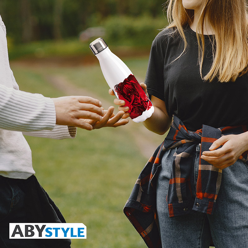 A fearsome demon devourer knows that proper hydration is essential for survival! Take this incredible Chainsaw Man Water Bottle by ABYstyle with you wherever you go, with the iconic Pochita staying by your side. Made from aluminium and steel, this bottle has a 500ml capacity and is not suitable for microwave or dishwasher use.