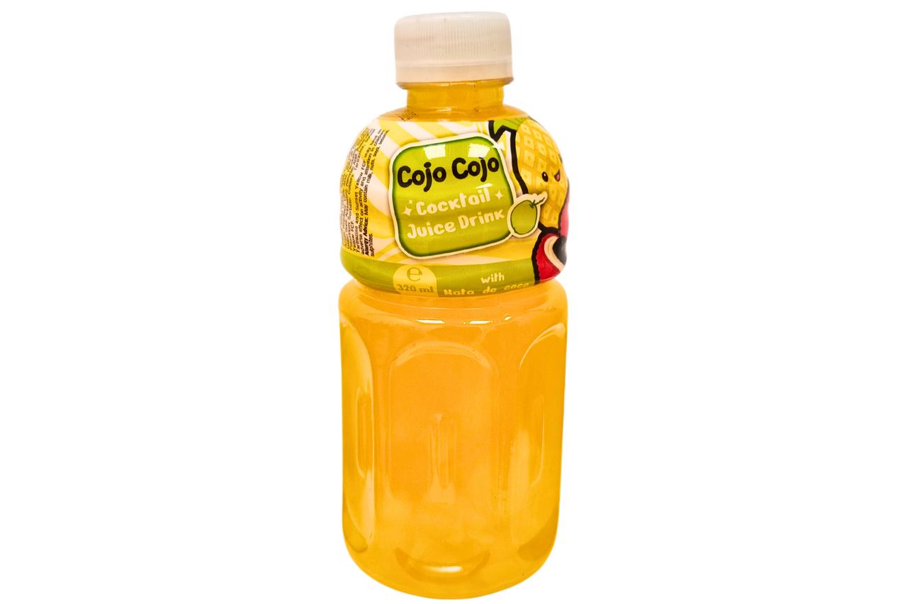 Enjoy a unique blend of fruity flavors with Cojo Cojo Cocktail Juice Drink. This refreshing beverage combines various fruit tastes with chewy nata de coco pieces, providing a fun and flavorful drinking experience perfect for gatherings or a tasty pick-me-up.