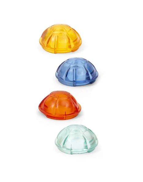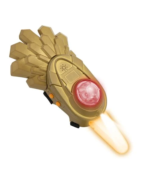 The set includes 5 different gems, each representing one of the 5 Gormiti tribes. Placing a gem on the glove triggers the name of a corresponding Gormiti (in random order). Press the button to light up the glove and hear sound effects.