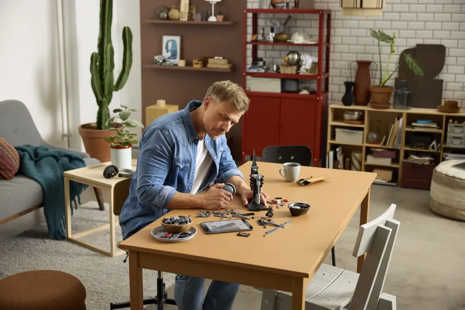 Create a fantasy decor masterpiece with the LEGO® Icons The Lord of the Rings: Sauron’s Helmet (11373) building kit for adult fans and collectors. This highly detailed, replica model captures the menacing look of the helmet of Sauron™ from the beloved movie trilogy. The set also includes a Sauron minifigure holding The One Ring, plus a sleek black display stand for both models, finished with a name plaque. This premium display model makes a super gift for fans of The Lord of the Rings movie series and a striking centerpiece for the home or office. Build smarter with the LEGO Builder app – zoom, rotate in 3D, track your progress and follow step-by-step digital instructions. Set contains 538 pieces.