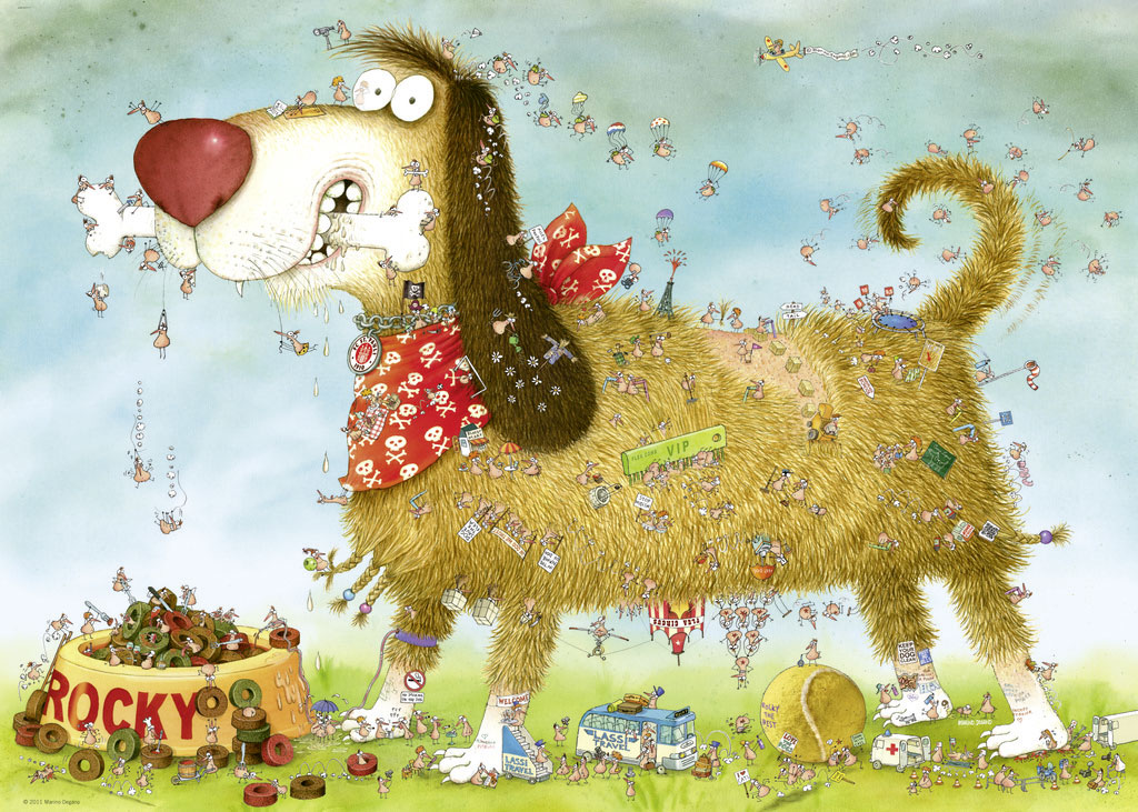 The Puzzle 29491 Tr Degano Dog's Life 1000 Pieces humorously depicts the life of a much-plagued four-legged friend of Marino Degano, who, despite his troubles, maintains and spreads cheerful vibes. The composition captures the charming world of dogs in detail, creating a fun and playful assembly experience with the 1000 pieces. Perfect for fans of animals, humor, and colourful puzzles.