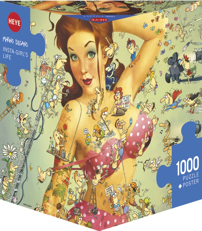 The Puzzle 29992 St Degano Insta Girl's Life 1000 Pieces showcases with brilliant creativity all the possible reactions to a typical Instagram post, captured with humour and detail by Marino Degano. With 1000 pieces, the puzzle combines vivid colours, playful mood, and striking detail, offering a fun and immersive assembly experience. Perfect for fans of social media, humour, and colourful puzzles.