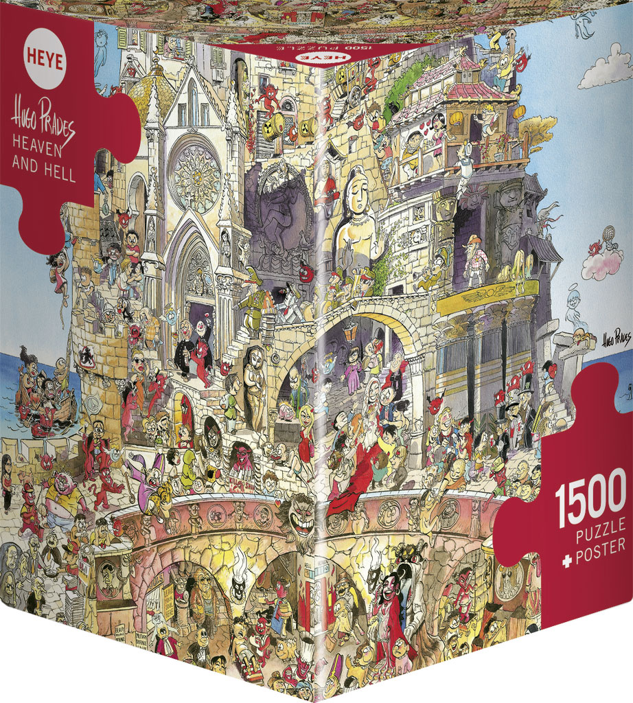 It’s hard to say where people are having more fun: in Hugo Prades’ fiery Hell, filled with intensity and dramatic energy, or in the airy heights of his supremely holy Heaven, where serenity and spectacle create an unparalleled experience. This 1500-piece puzzle challenges the imagination and provides hours of entertainment, while the detailed print highlights every element of Prades’ contrasting world.