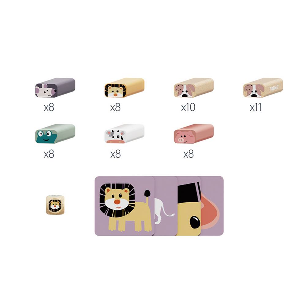 - 51 colorful wooden blocks with animal prints
