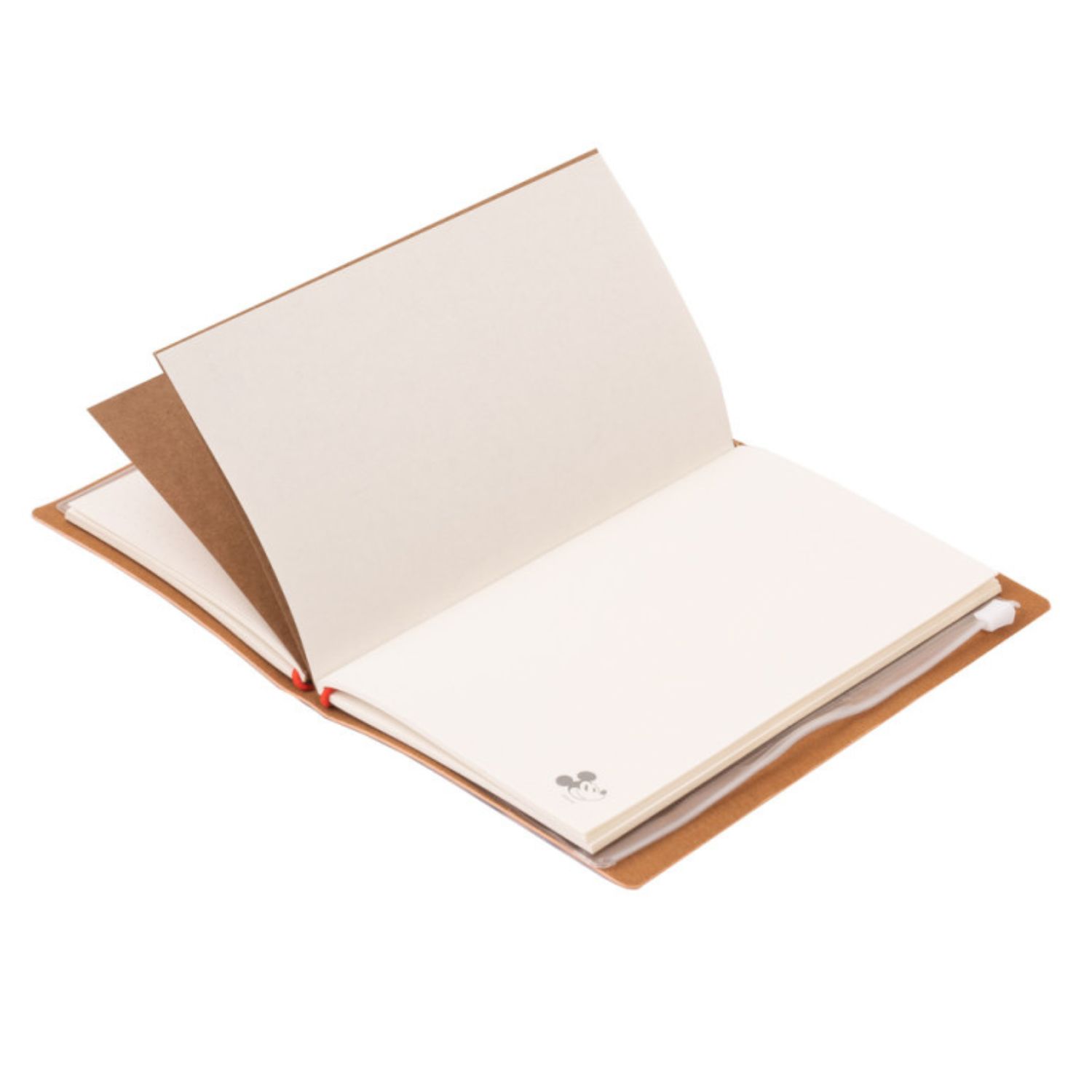 This Mickey Mouse travel notebook is part of Disney's 100th Anniversary collection and is ideal for jotting down all your ideas and taking it with you wherever you go. It includes two replaceable notebooks with personalized interiors, space for cards, and a pocket on the inside back.