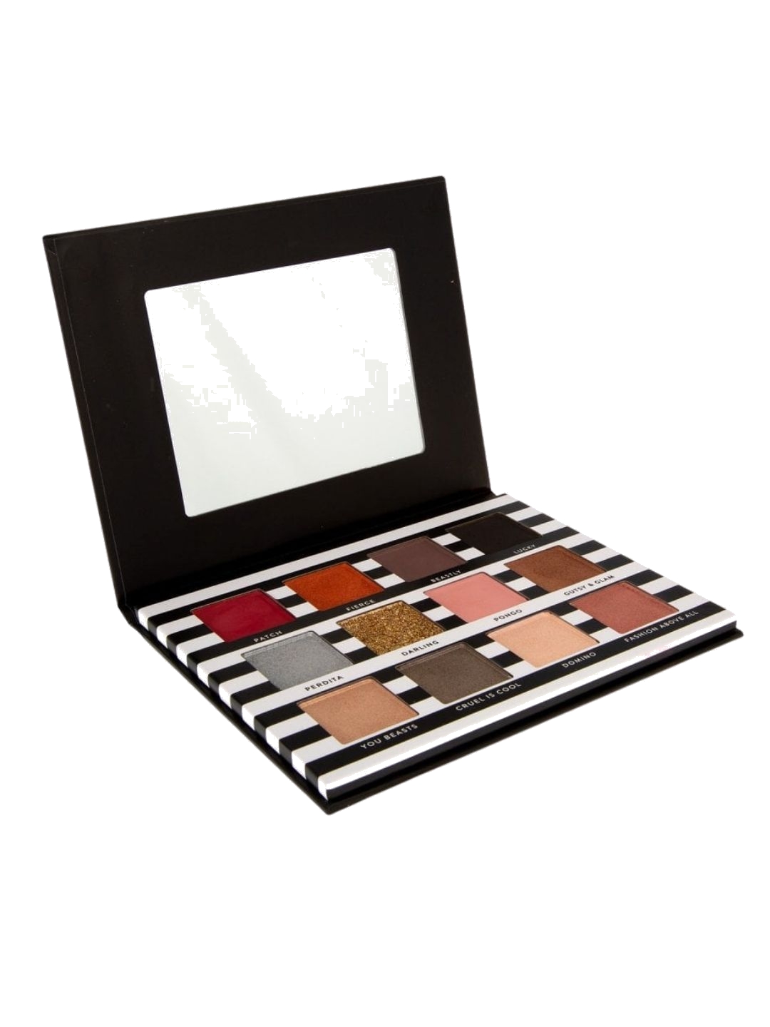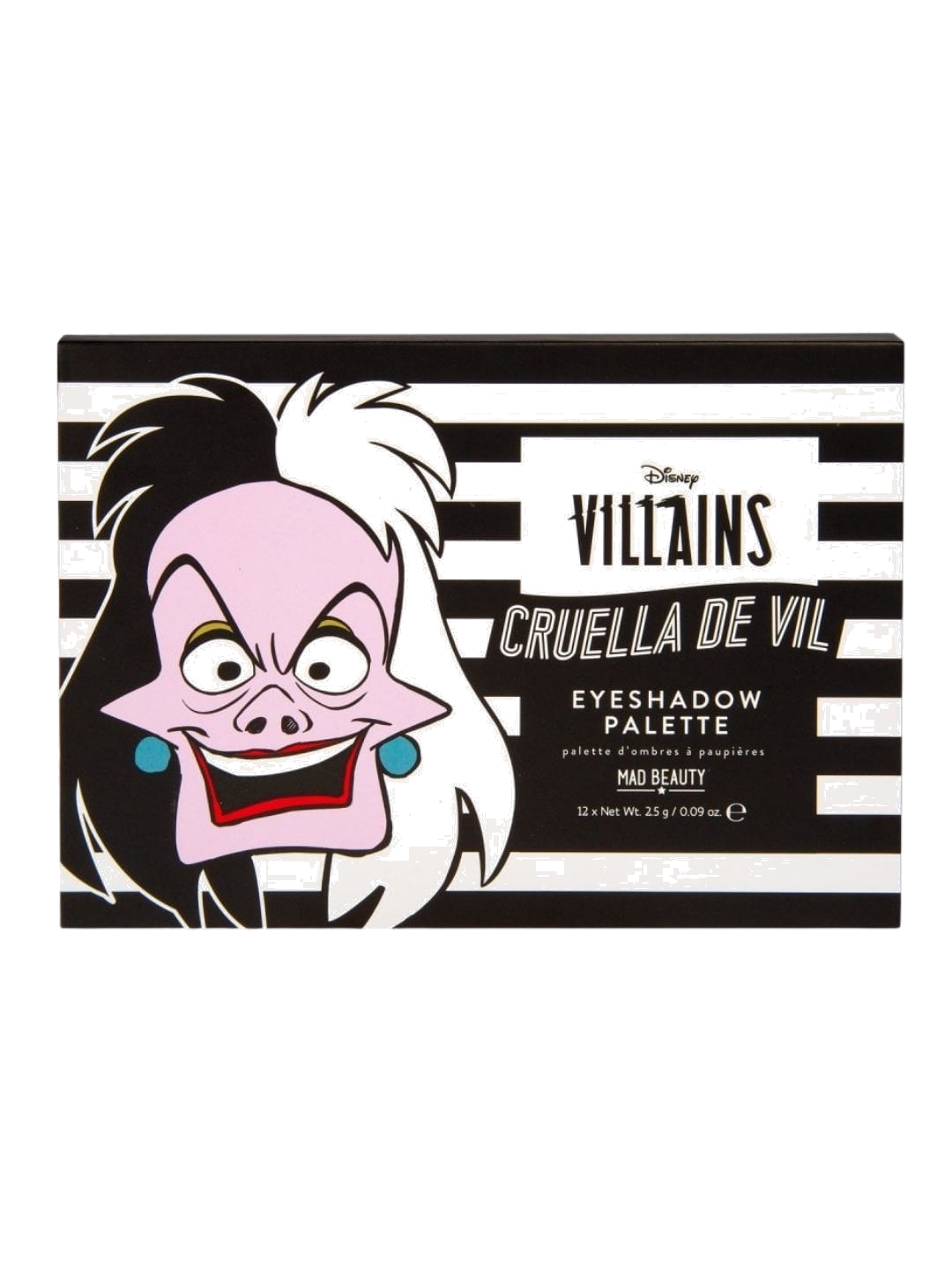 Become a Mistress of Makeup with this Disney Cruella eyeshadow Palette - Officially Licensed - By Mad Beauty - 12 Shadows - Imported *Ingredients: Talc, Paraffinum Liquidium,Ethylhexyl Palamitate, Magnesium Stearate, Dimethicone, Phenoxythanol, Ethylkexylglycerin,Mica May contain: CI 42090,CI16035, CI 77491, CI77492, CI 77499, CI 77891, CI 77742