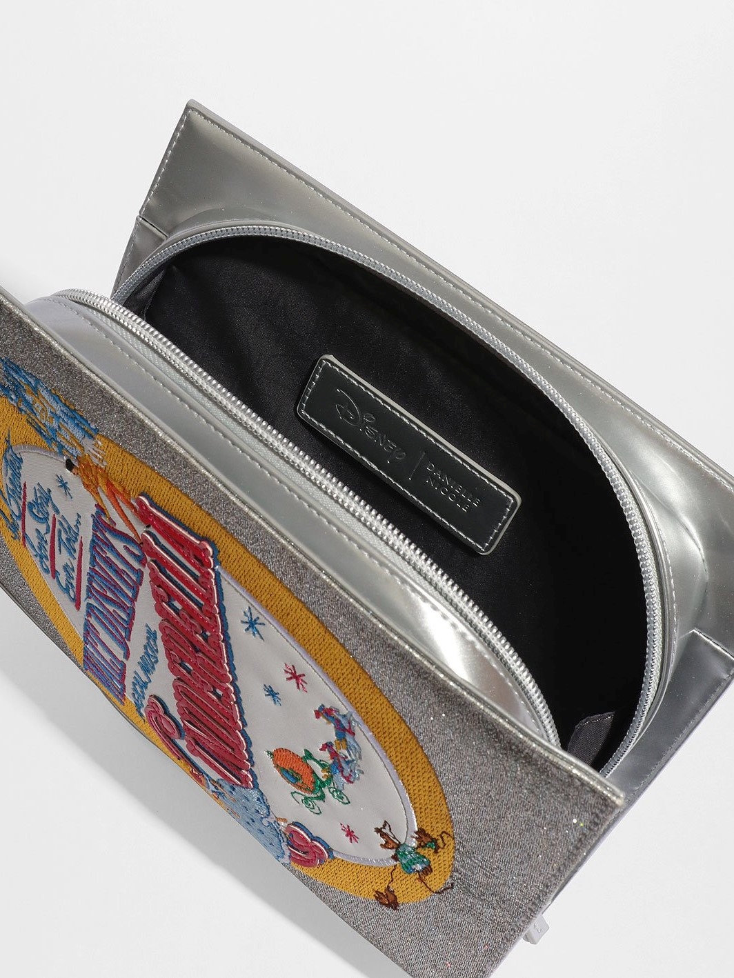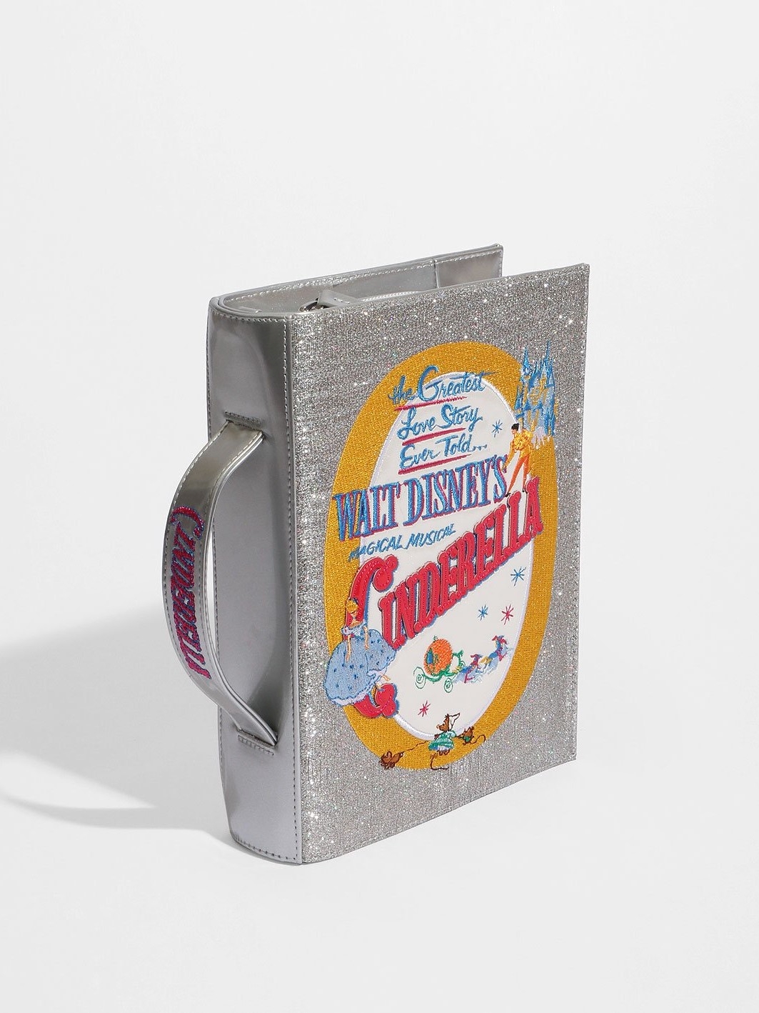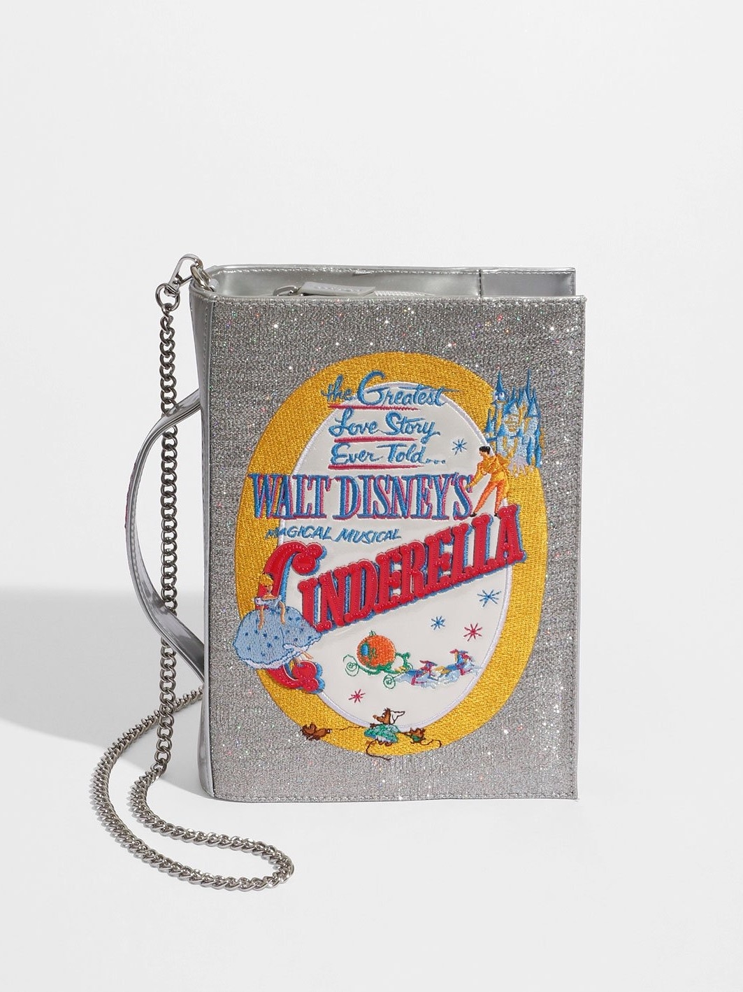 Inspired by Cinderella’s original theatrical release artwork, this sparkling Book Clutch brings Disney’s “Magical Musical” to life! Features a handle with “Cinderella” embroidery, zip around closure and removable chain shoulder strap. - 16 cm x 24cm - Polyurethane - Imported