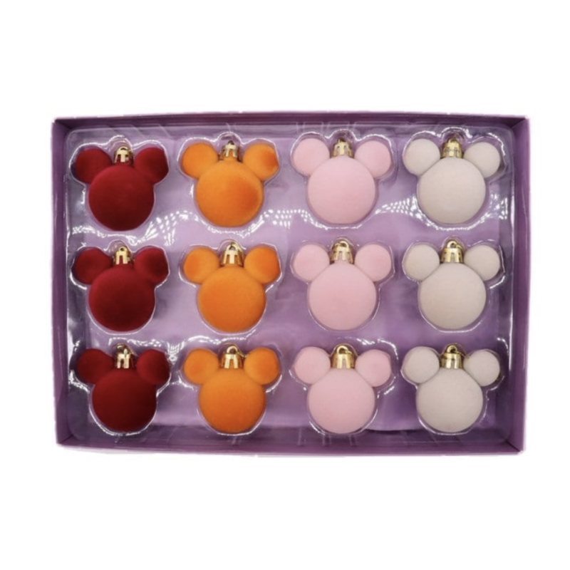 Disney Mickey Mini ear Baubles 12 pcs Velvet Red Orange