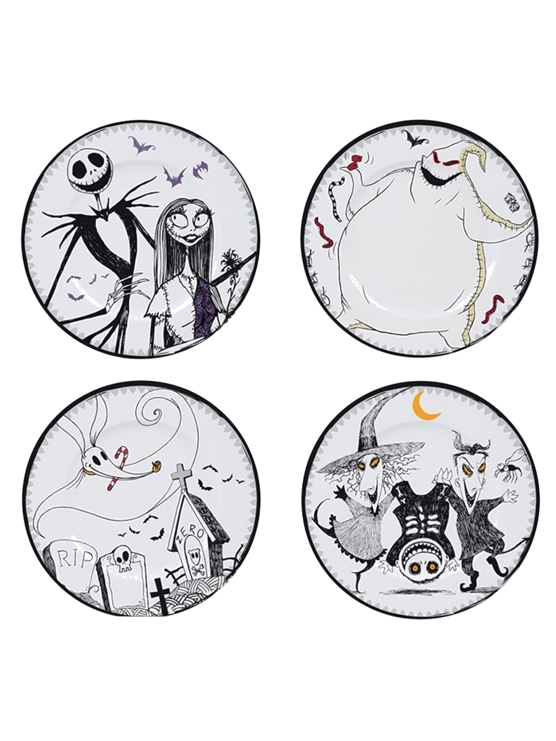 Your favorite Nightmare Before Christmas characters are all here with this fabulous set of 4 plate! - Official Licensed - Material: porcelain. - Dishwasher and micro-wave safe. - Packaging: Carton closed box. - Diameter: 21cm - Imported