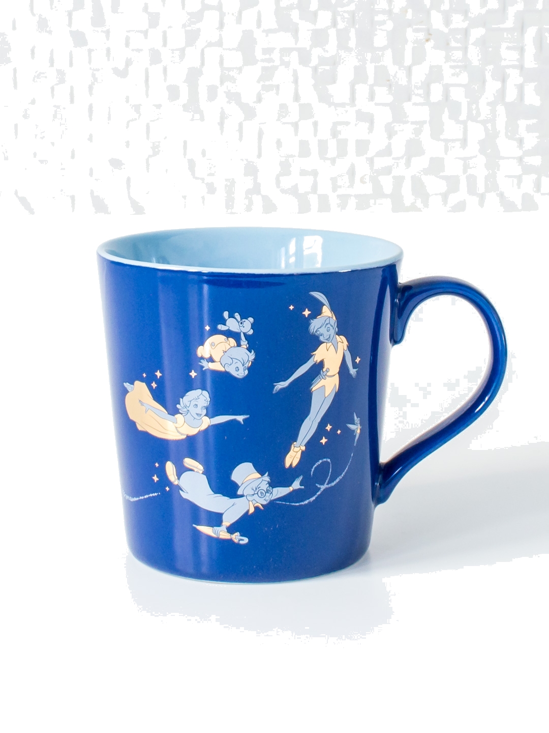 Think the happiest things with this Disney tapered mug featuring a classic scene from the 1953 animated Peter Pan film. The mug's lovely tapered shape makes this an attractive addition to any Disney collection, including gold foil character art of Peter Pan, Wendy, Michael, John and Tinkerbell on the front against a blue background, along with the words, "Think of the happiest things" written on the back. - Officially licensed - 325 ml - Imported