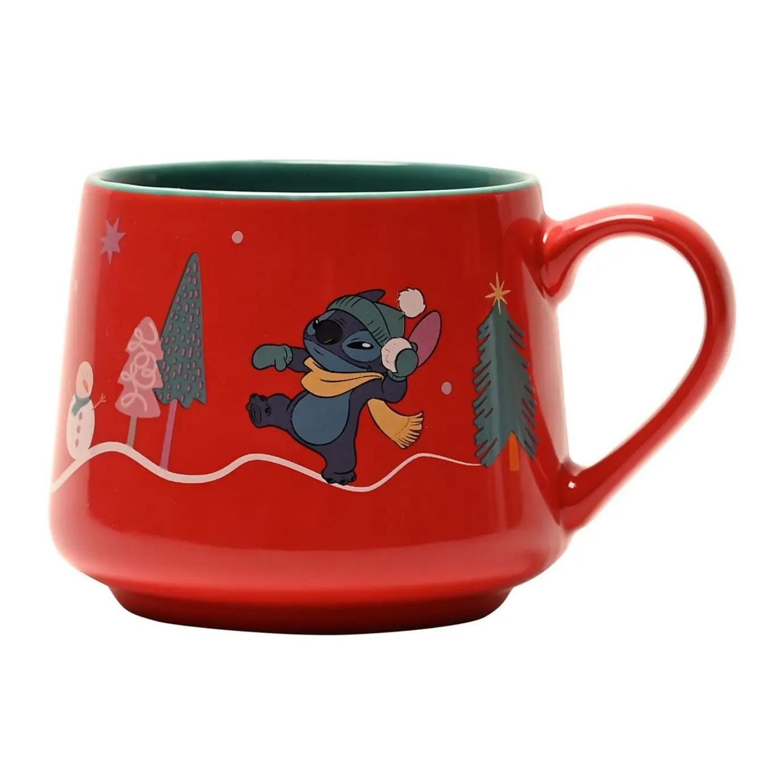 This festive Disney® mug is filled with holiday cheer, perfect for Disney fans. The red ceramic mug features a festive design with Stitch and Angel from Lilo & Stitch, complete with a gloss finish. The interior of the mug is inscribed with the phrase ‘Merry Everything’. It is packaged in a 4-color printed closed box for protection.
